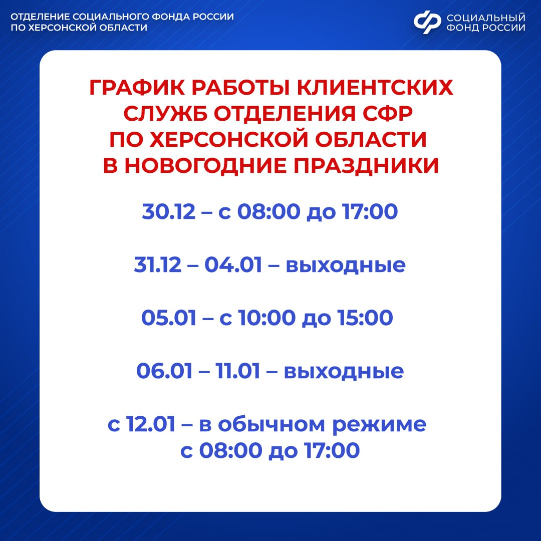 График работы Отделения Социального фонда России по Херсонской области в новогодние праздники