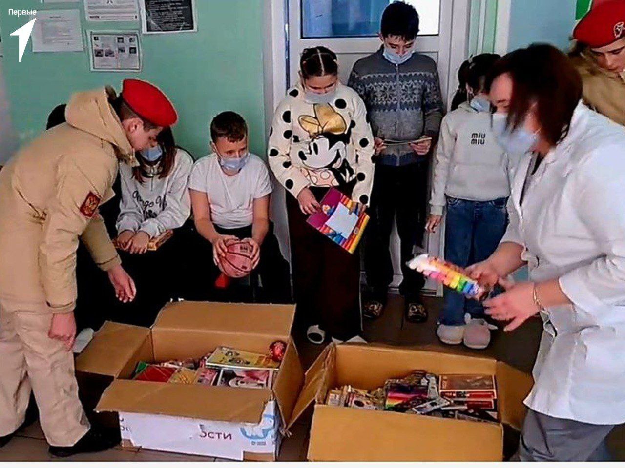 Сбор гуманитарной помощи происходил в рамках акции «Коробки храбрости», организованной советником директора по воспитанию Алиной Клищевской. Под руководством наставника Сергея Клищевского ребята собрали канцелярские принадлежности, книги, елочные украшения и новые игрушки, которые уже вручили малышам. Юнармейцы посетили их в больнице и лично передали все собранные подарки.