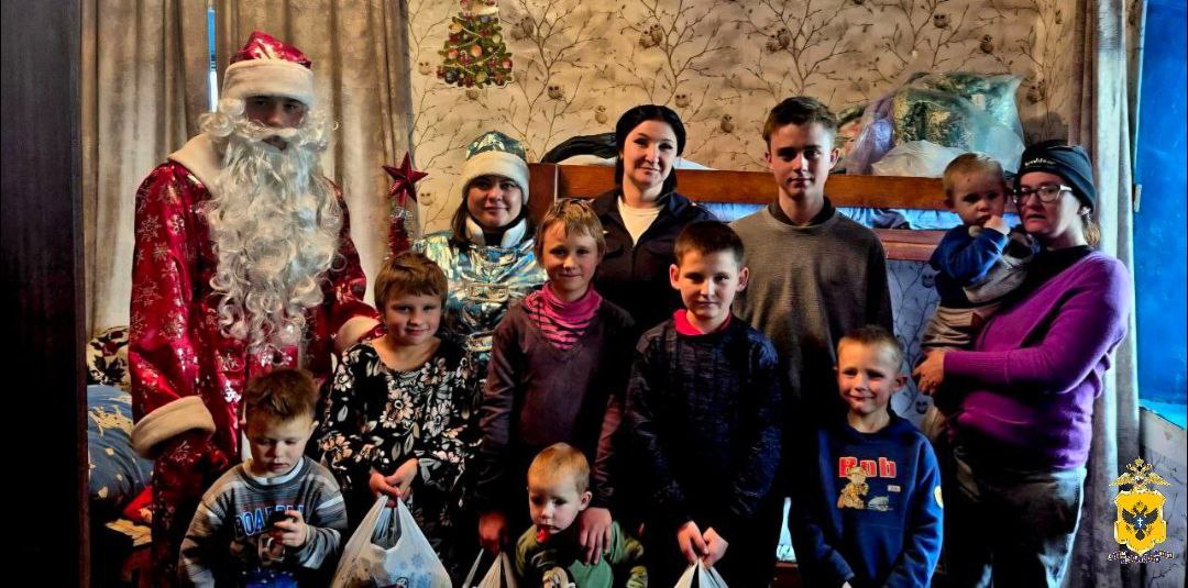 В рамках акции «Полицейский Дед Мороз» стражи порядка в праздничных костюмах посетили семьи в Геническом округе