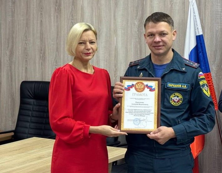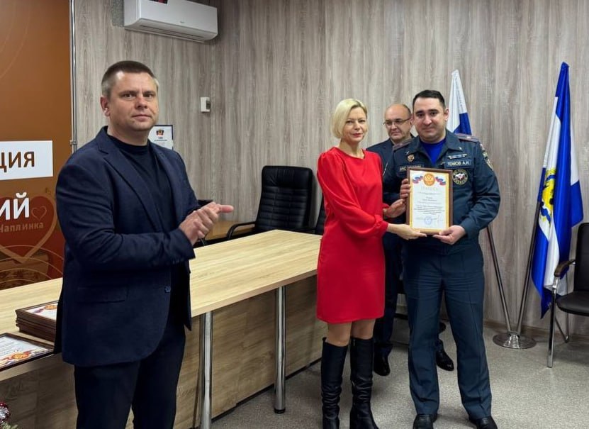 Глава Чаплинского округа, секретарь местного отделения партии «Единая Россия» Лилия Пуляева вручила грамоту начальнику 12 пожарно-спасательной части 2 пожарно-спасательного отряда ФПС ГПС Главного управления МЧС России по Херсонской области Адаму Томову и заместителю начальника 12 пожарно-спасательной части 2 пожарно-спасательного отряда ФПС ГПС Главного управления МЧС России по Херсонской области Алексею Карханову за высокий профессионализм, оперативность и добросовестное исполнение должностных обязанностей.