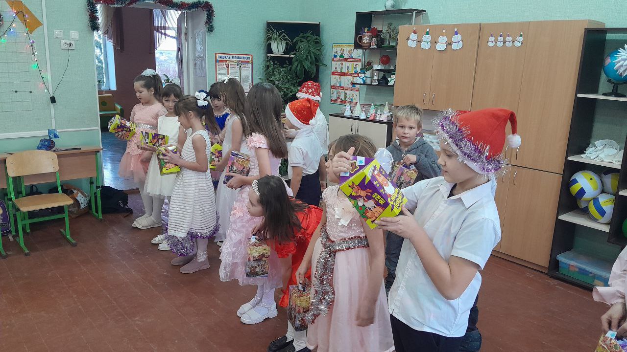 В Верхнерогачикской школе Секретарь местного отделения партии «Единая Россия» Валентина Беланова поздравила учащихся начальных классов с наступающим Новым годом и вручила подарки, пожелав малышам крепкого здоровья, отличной учебы и отсутствия невзгод.