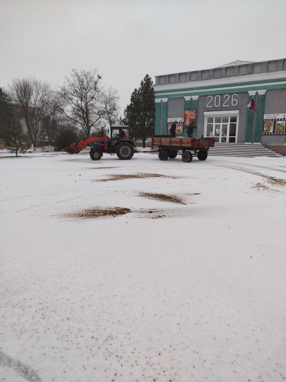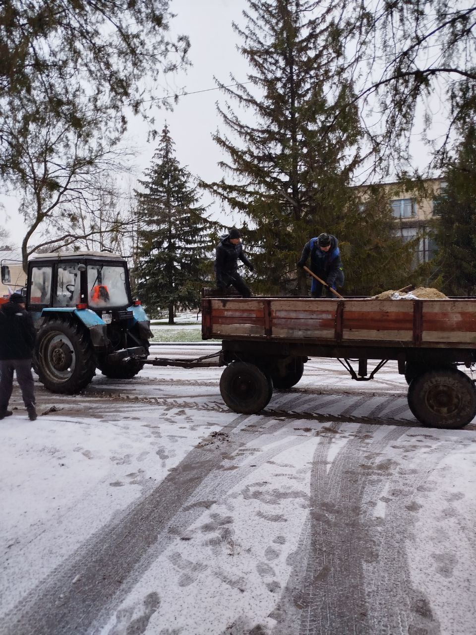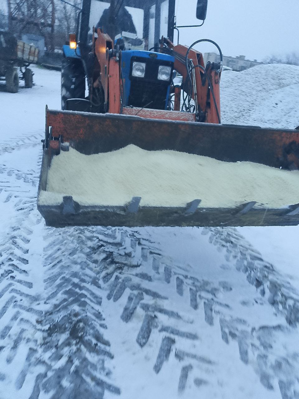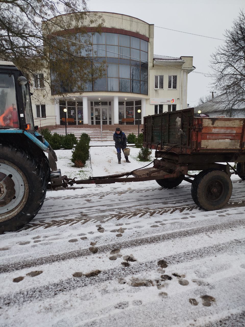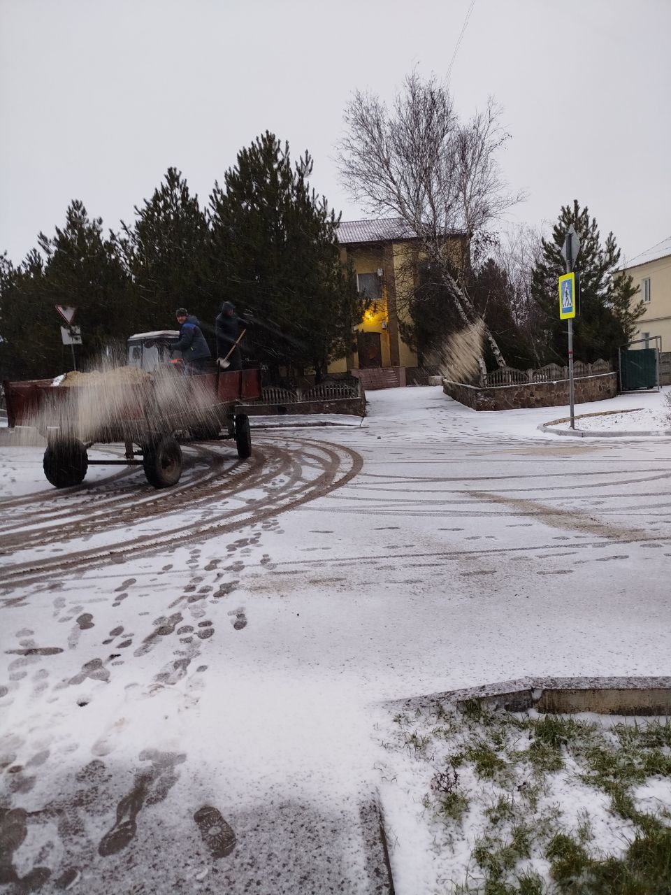 Снег выпал, а на отдельных участках дорог округа гололедица. Для того, чтобы предупредить травматизм жителей особенно возле социально важных объектов осуществляется подсыпка песком.