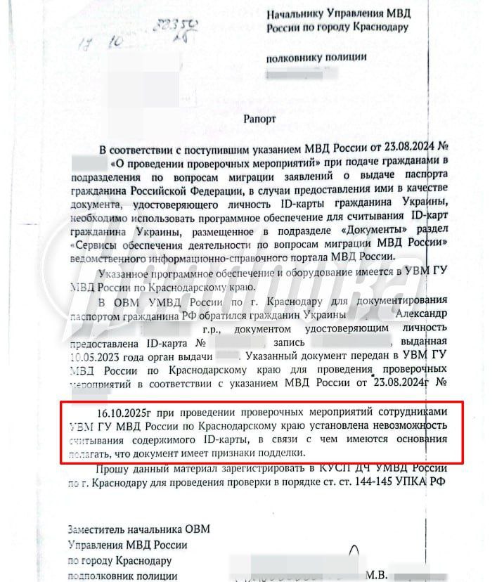 В МВД Краснодара пока нет технических возможностей для считывания его украинского ID нового образца. Обидно, но не критично!
