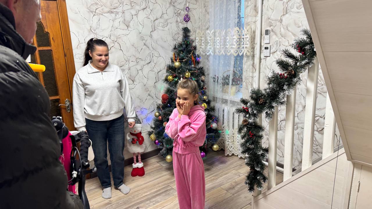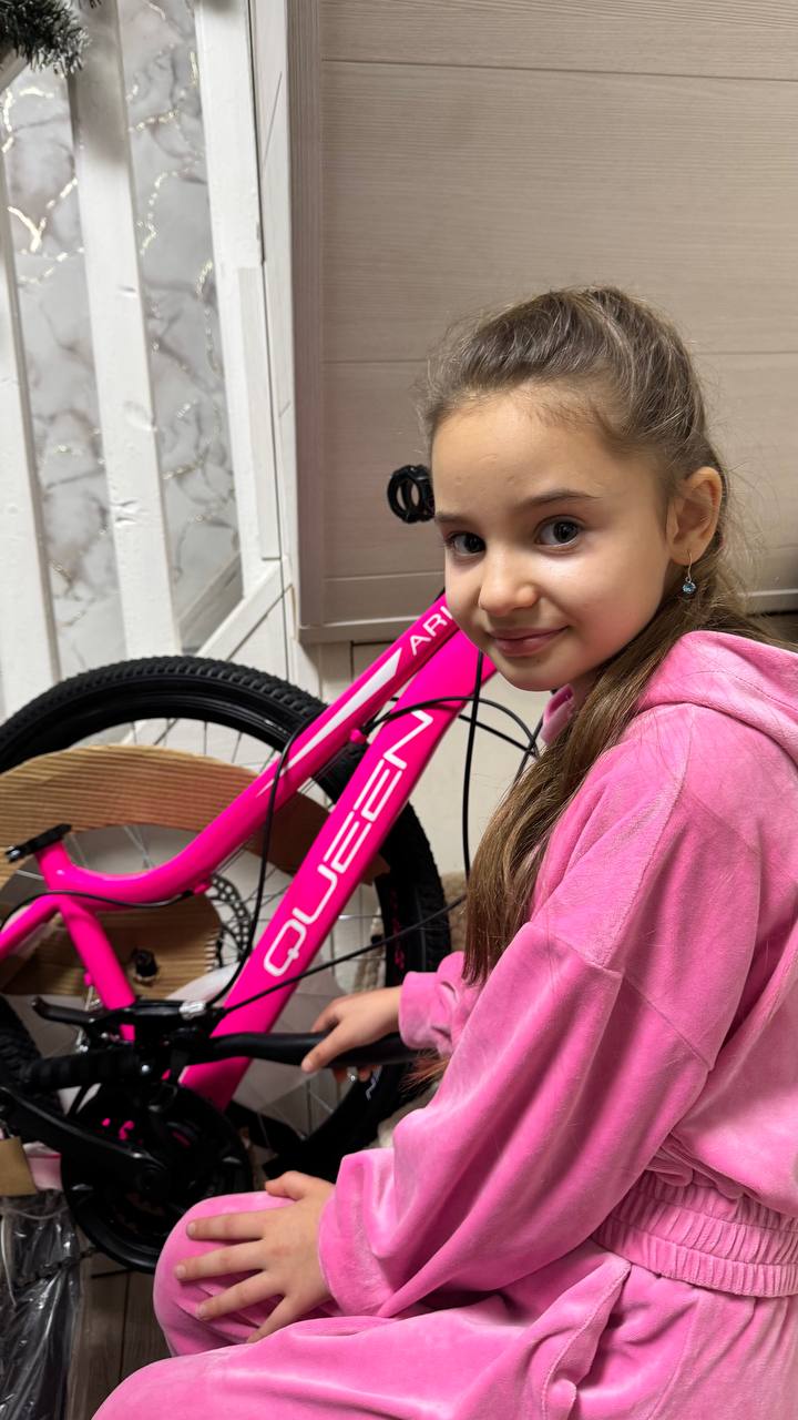 Первая остановка – поселок Таврия, Скадовского муниципального округа Херсонщины. Дед Мороз наказал передать Маше Тимошик розовый велик. Поручение исполнено. Маша увлекается танцами, отличница. Что неудивительно, ведь мама учительница начальных классов. А папа преподает математику. У подружек Маши велосипеды уже есть, так что теперь будут рассекать вместе.