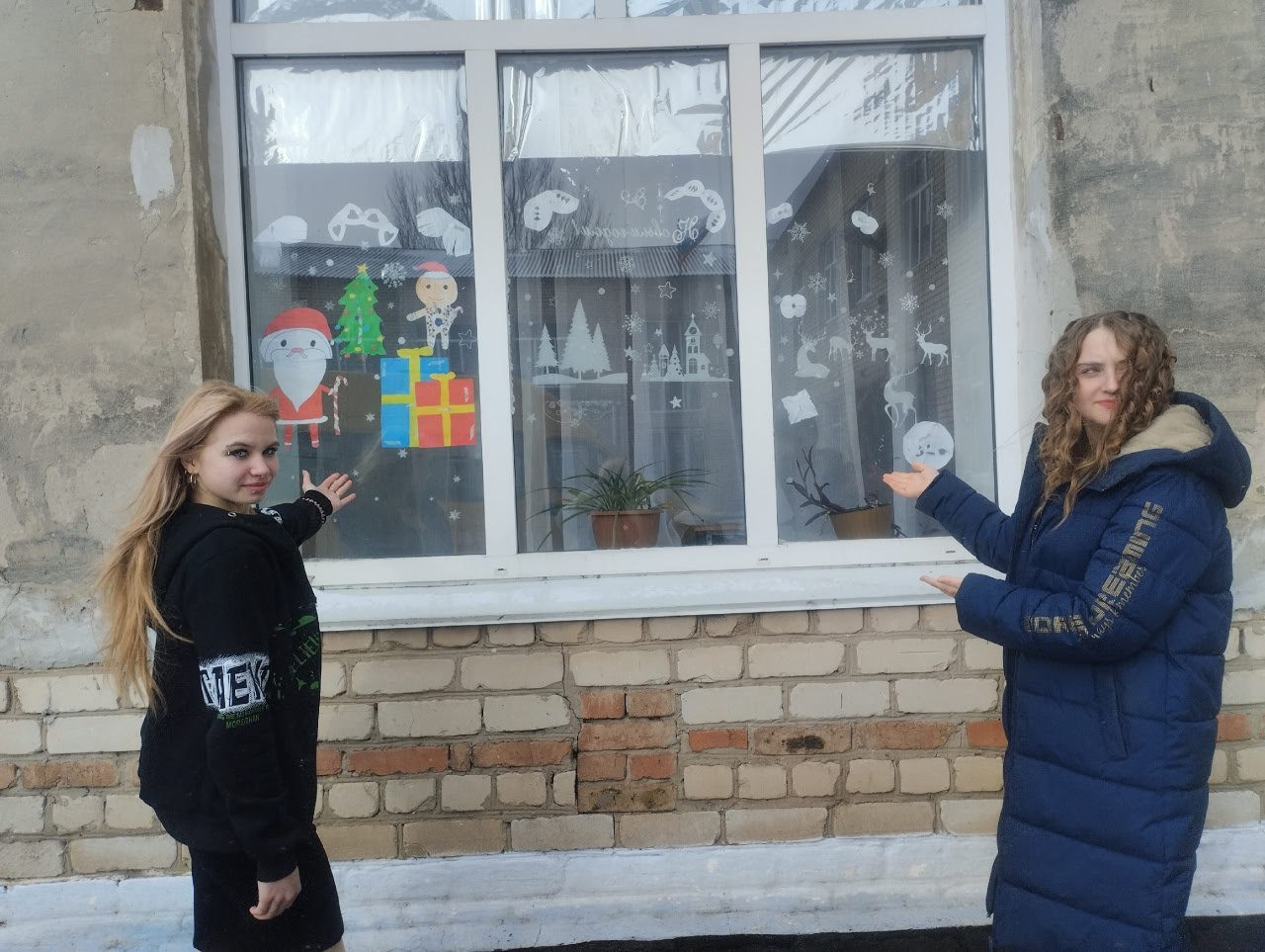 Творческая бригада школьников превратила окна учебного заведения в настоящие произведения искусства: замысловатые новогодние рисунки, сверкающие гирлянды и трогательные поделки радовали глаз не только учеников, но и всех прохожих.