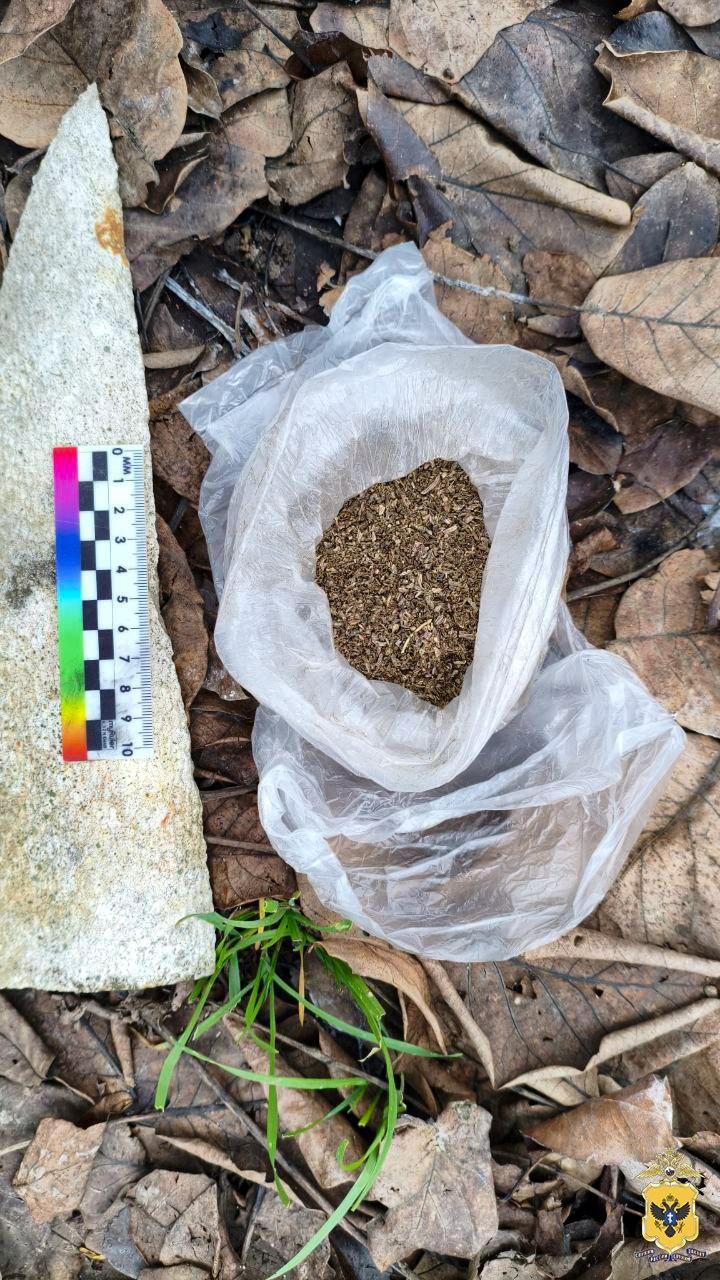 В ходе осмотра домовладения фигуранта в тайнике на территории двора, а также в кармане одежды, полицейские обнаружили 2 свертка и пакет с веществом растительного происхождения с характерным запахом конопли.