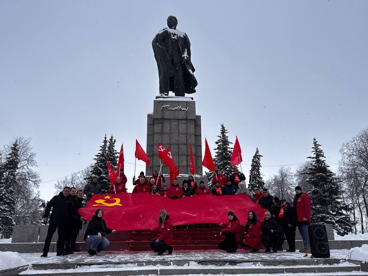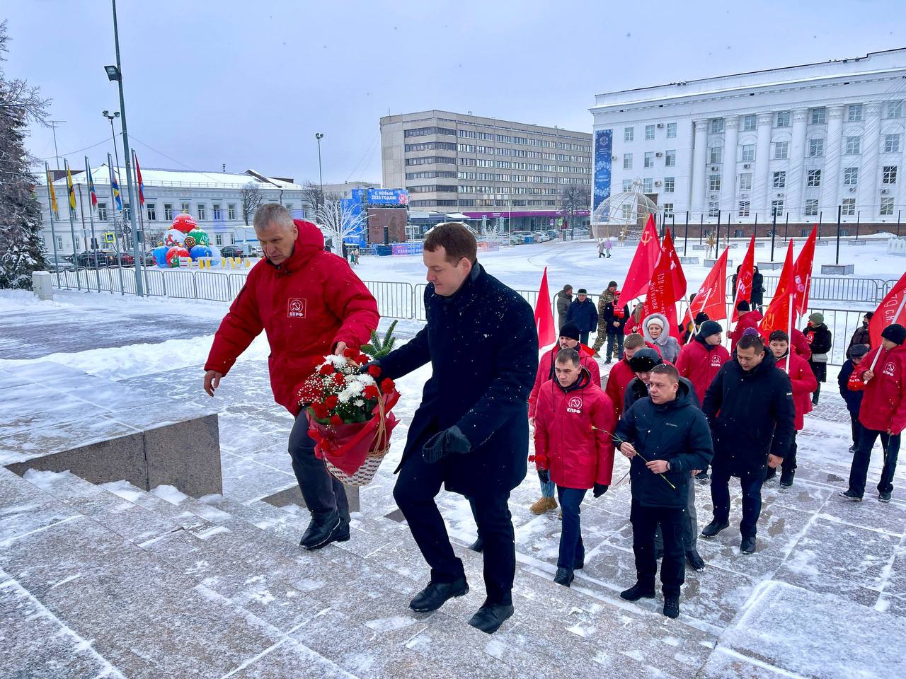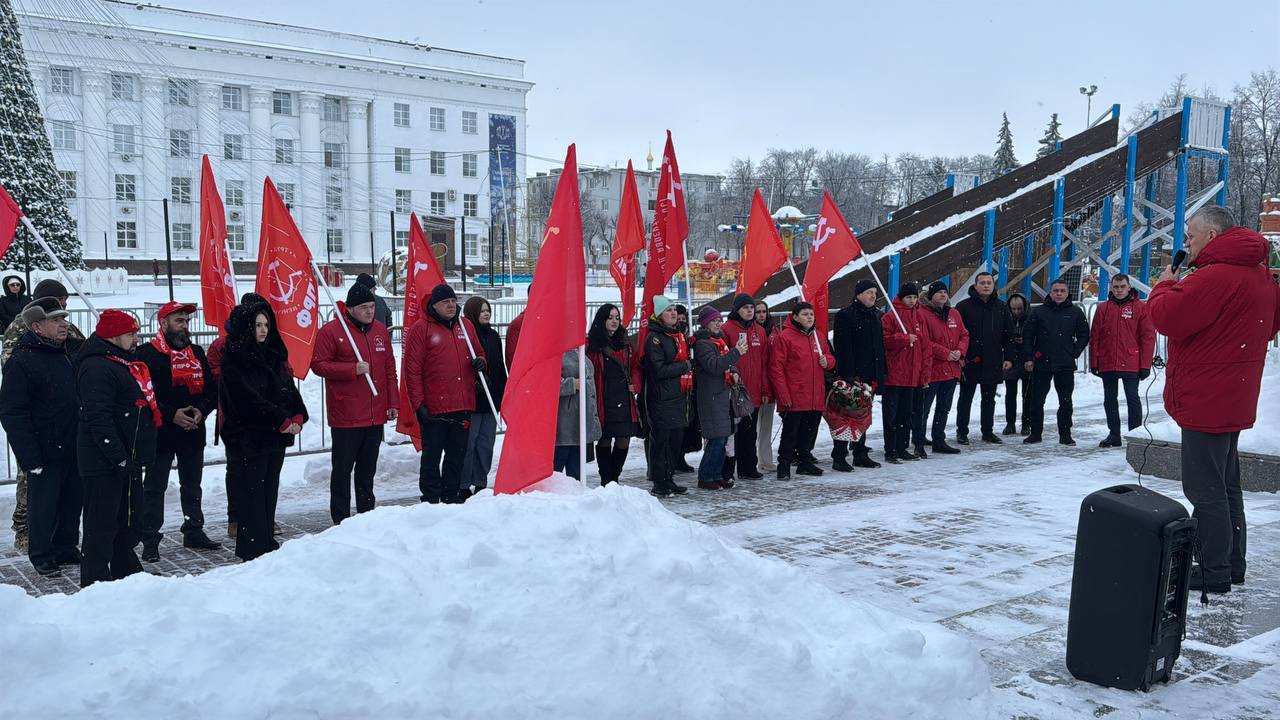 На площади у памятника Владимиру Ленину собрались активисты и сторонники партии, чтобы вспомнить историческое значение создания Советского Союза и тот путь, который он открыл для миллионов людей.