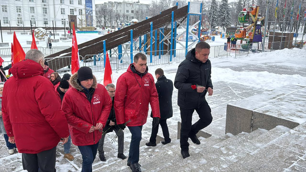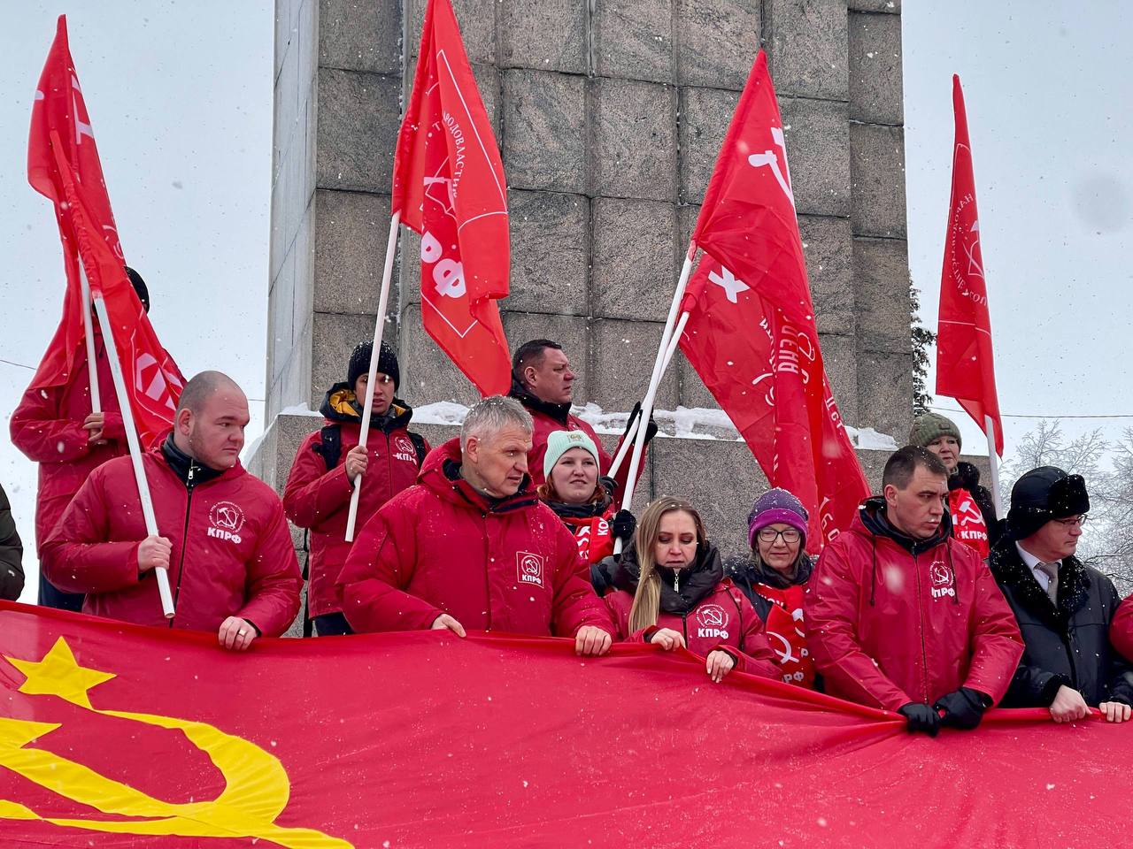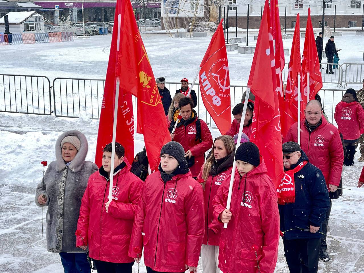 На площади у памятника Владимиру Ленину собрались активисты и сторонники партии, чтобы вспомнить историческое значение создания Советского Союза и тот путь, который он открыл для миллионов людей.