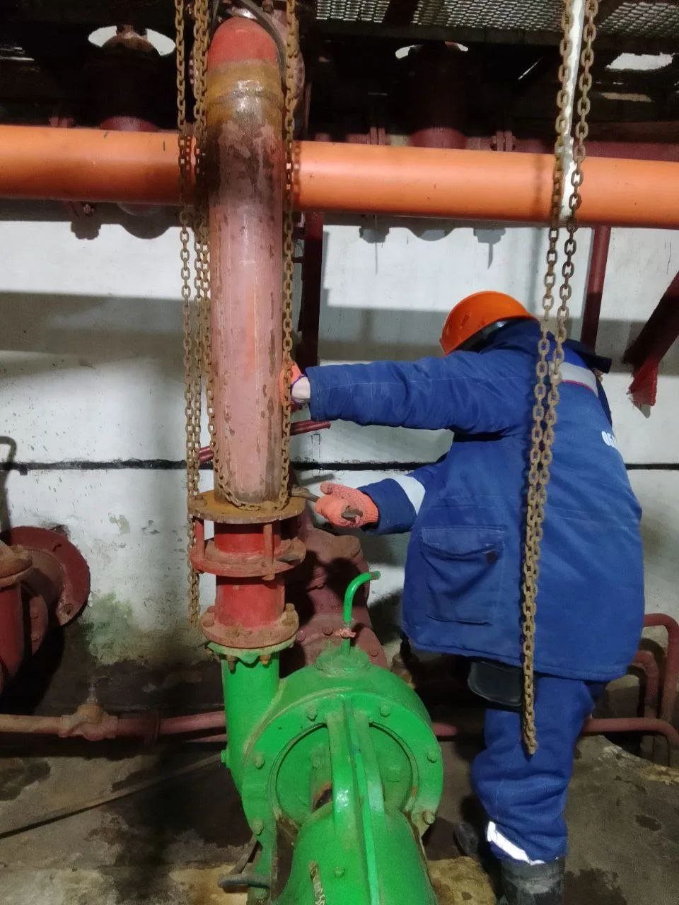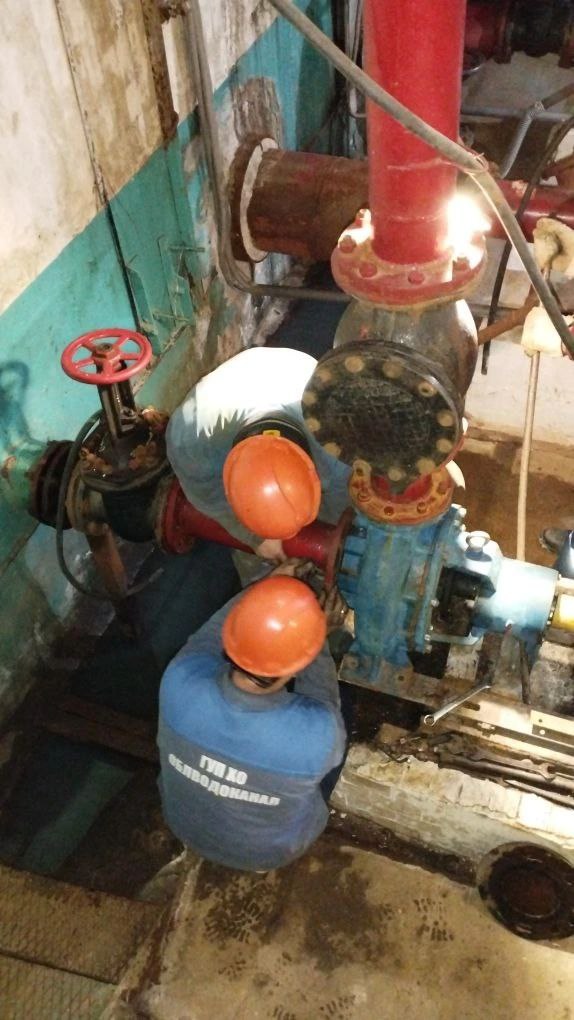 На канализационных насосных станциях №2, №3, №4, №5 и №8 бригадой из четырёх человек выполнена чистка решёток в грабельных отделениях. На КНС-2 дополнительно проведена ревизия и чистка рабочего колеса насосного агрегата, а на КНС-6, на втором агрегате, осуществлена чистка входного коллектора. Также на КНС-12 в городе Таврийск бригадой произведена замена обратных клапанов на первом, втором и третьем насосных агрегатах.