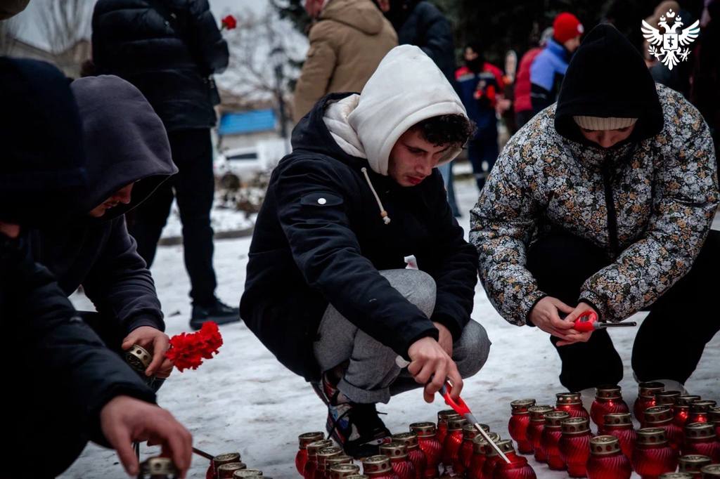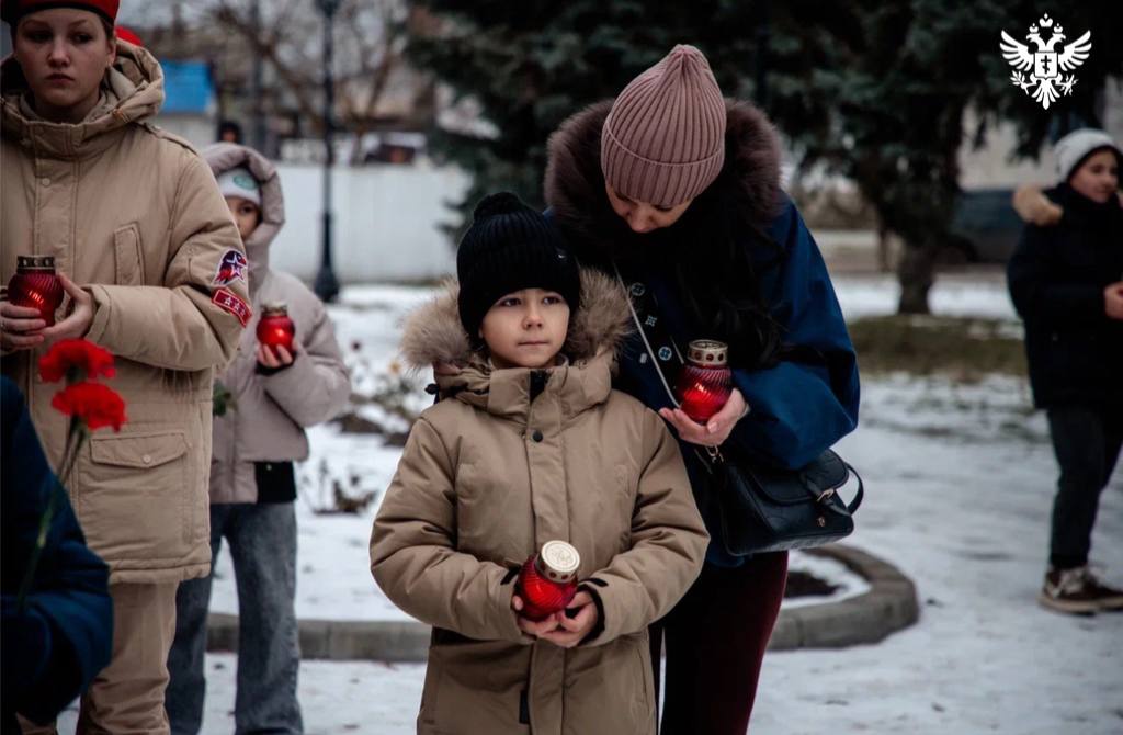 В Геническе прошла траурная акция памяти жертв обстрела в селе Хорлы. Мероприятие состоялось у памятника «Скорбящей матери» и было организовано по инициативе жителей, молодёжных активистов и представителей «Юнармии».