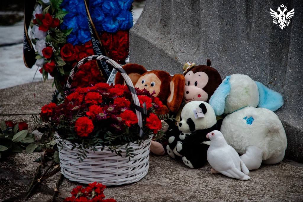 Участники зажгли лампады, возложили цветы и мягкие игрушки к подножию монумента. Собравшиеся почтили память погибших минутой молчания.
