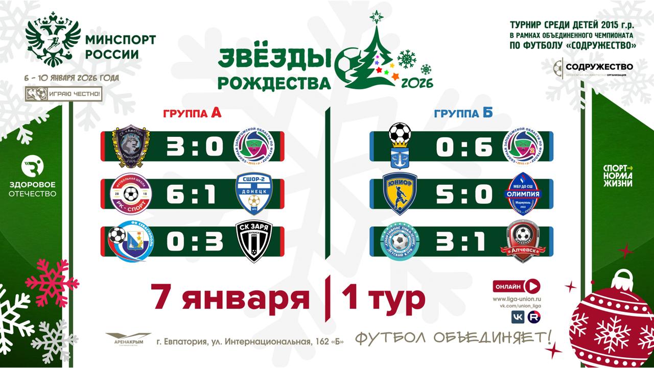 7 января 2025 года в г. Евпатория состоялся первый тур детско-юношеского футбольного турнира "Звёзды Рождества" Объединённого чемпионата по футболу "Содружество" среди юношей 2015 года рождения.