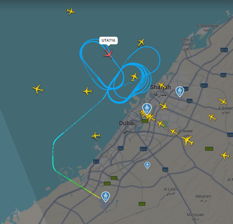 Самолет российской авиакомпании подал сигнал бедствия — Boeing 767-224, летевший из Дубая в Москву, сейчас сжигает топливо в небе над Дубаем перед экстренной посадкой.