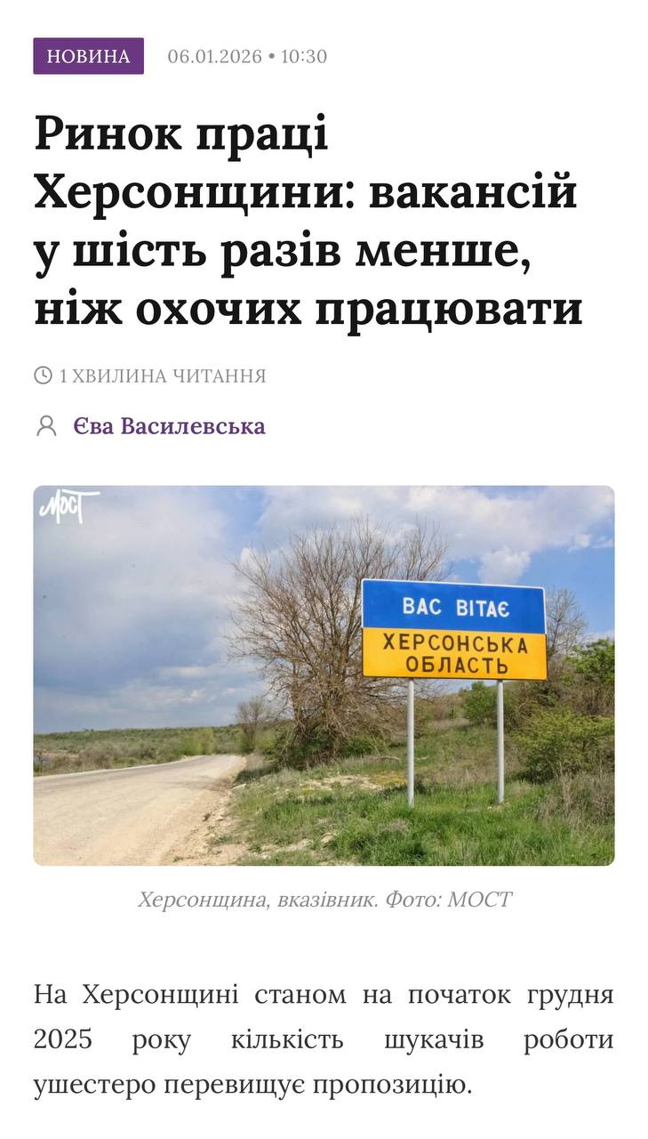 На этом фоне ситуация на временно подконтрольной Украине территории выглядит диаметрально противоположной. В «украинской» части Херсонской области, в том числе в городе Херсоне, соискателей в разы больше, чем предлагаемых вакансий. По нашим данным, желающих работать в шесть раз больше, чем реальных рабочих мест. Люди есть — работы нет.