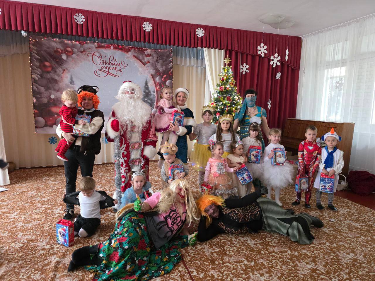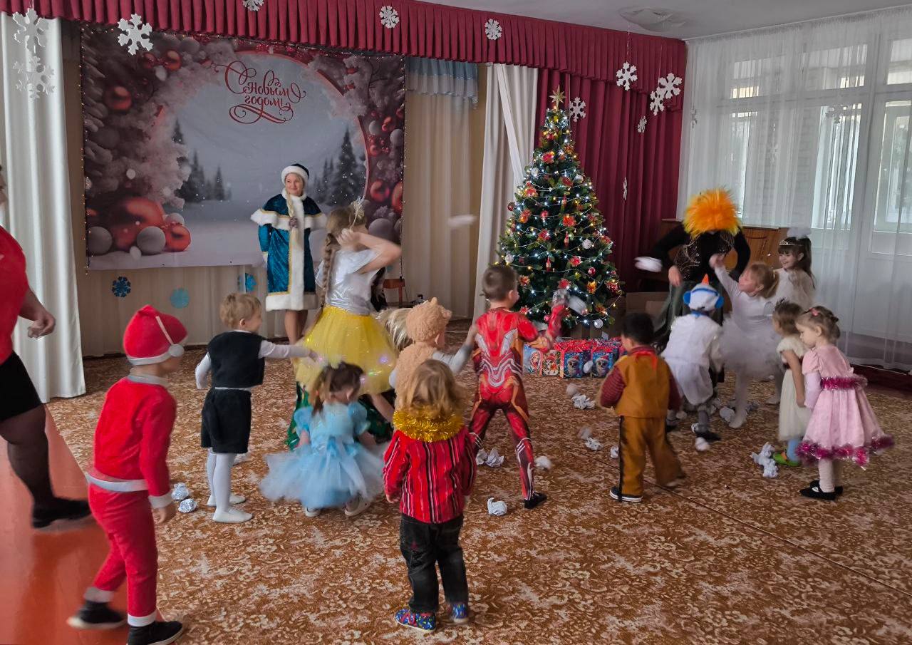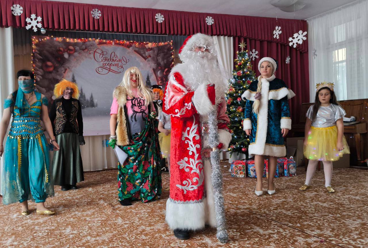 Дед Мороз и Снегурочка, кот Ученый и Шамаханская царица, а также их помощники «В поисках Нового года» водили хороводы, играли, пели и читали стихи. Все участники получили сладкие подарки.