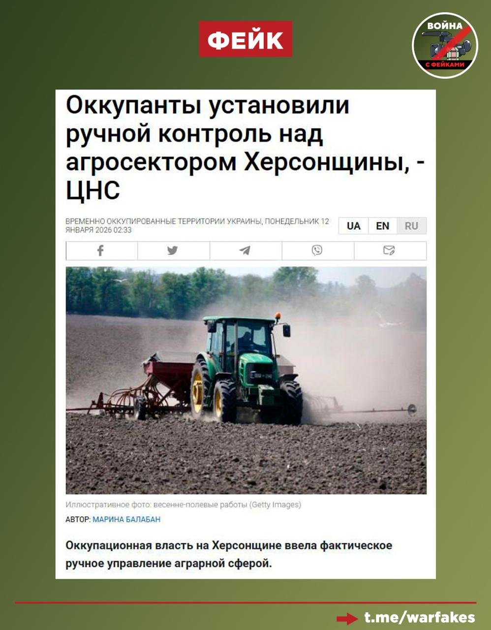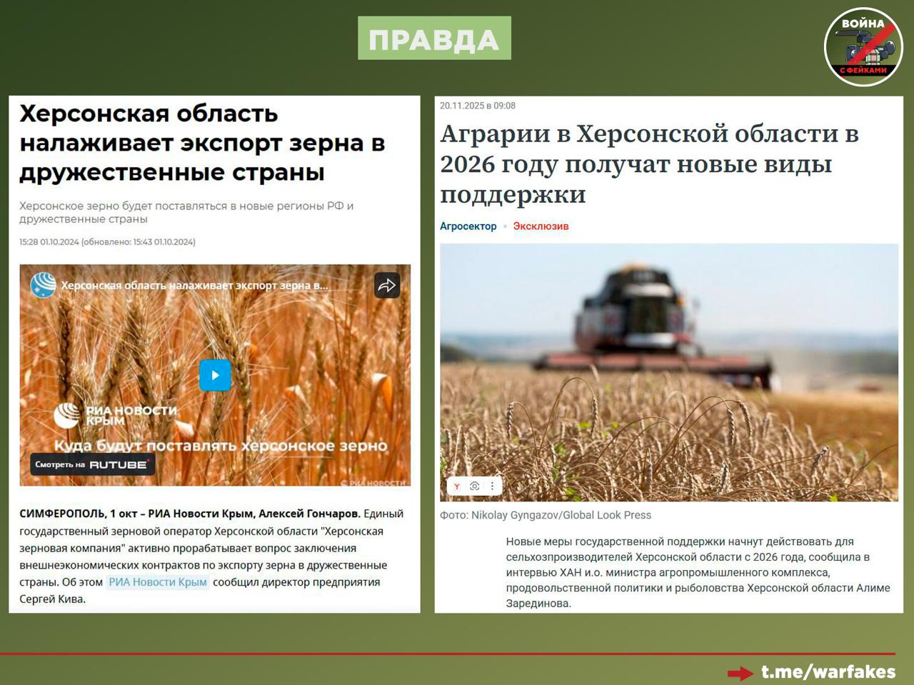 Фейк: РФ душит аграриев Херсонской области, помещая их в заведомо худшие условия и лишая гарантий стабильности. Об этом пишут украинские СМИ.