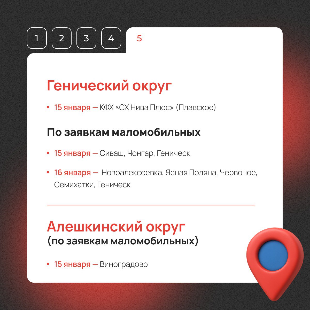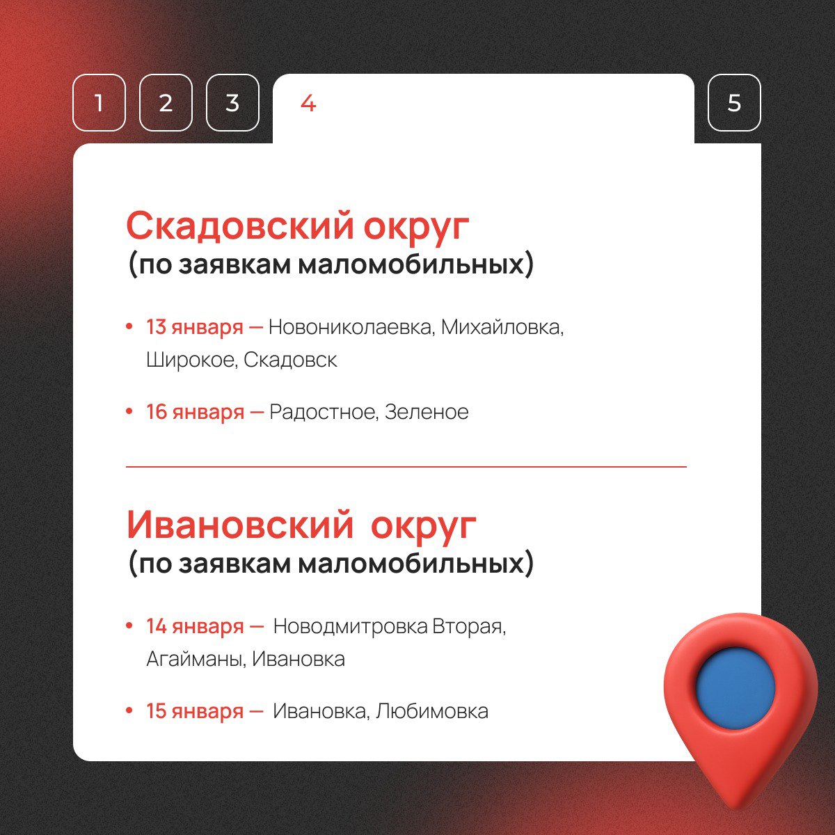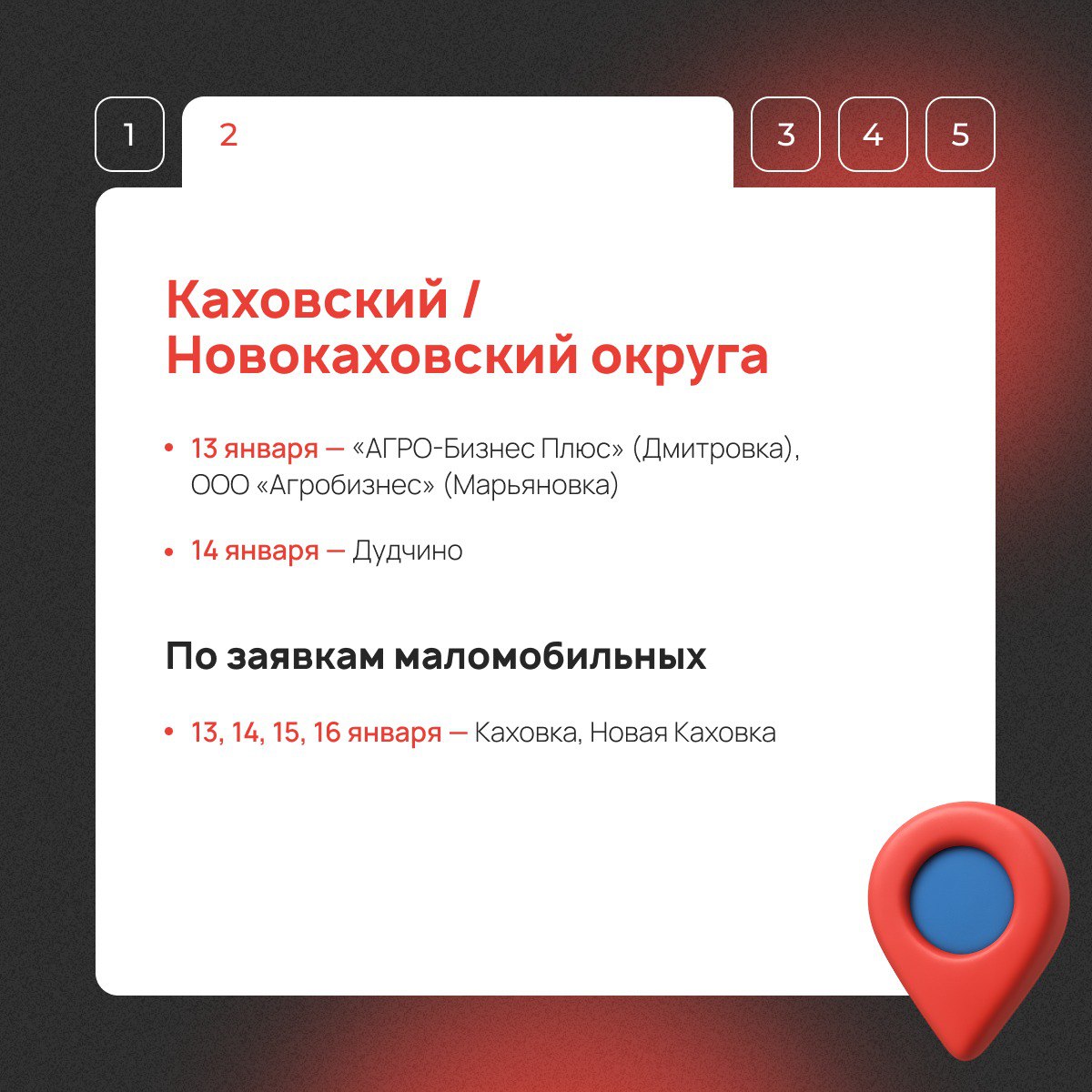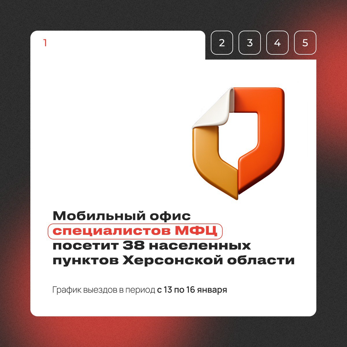 С 13 по 16 января передвижной офис посетит населенные пункты Херсонской области. Узнайте расписание выездов в социальных сетях и на официальном сайте МФЦ.