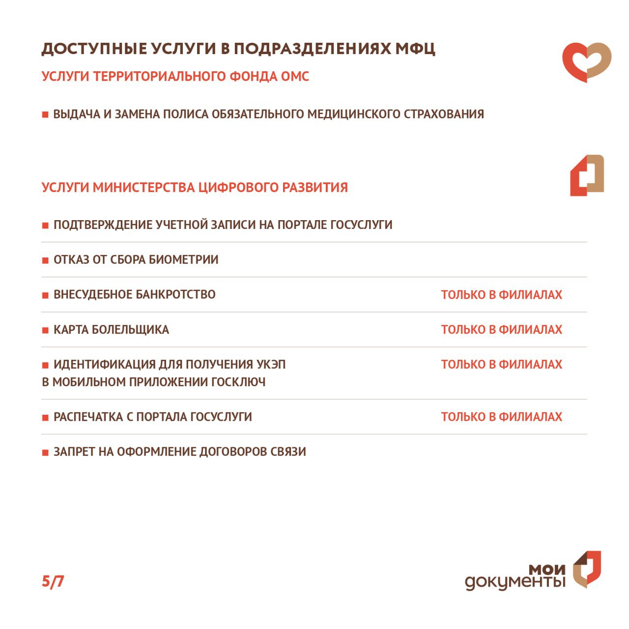 В отделениях МФЦ Херсонской области доступно порядка 70 государственных и муниципальных услуг. Разместили полный список в информационных карточках.