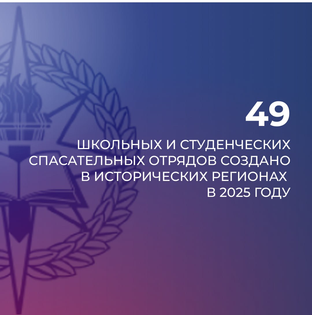 В исторических регионах России в 2025 году было создано 36 школьных спасательных отряда и 13 студенческих спасательных отрядов. Это вдвое больше, чем с ноября 2023 по декабрь 2024 года.