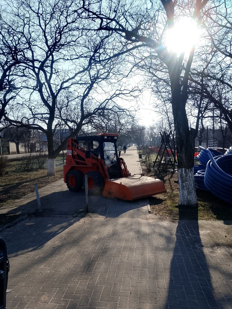 Подметание пешеходной дорожки в сквере на ул. Суворова.