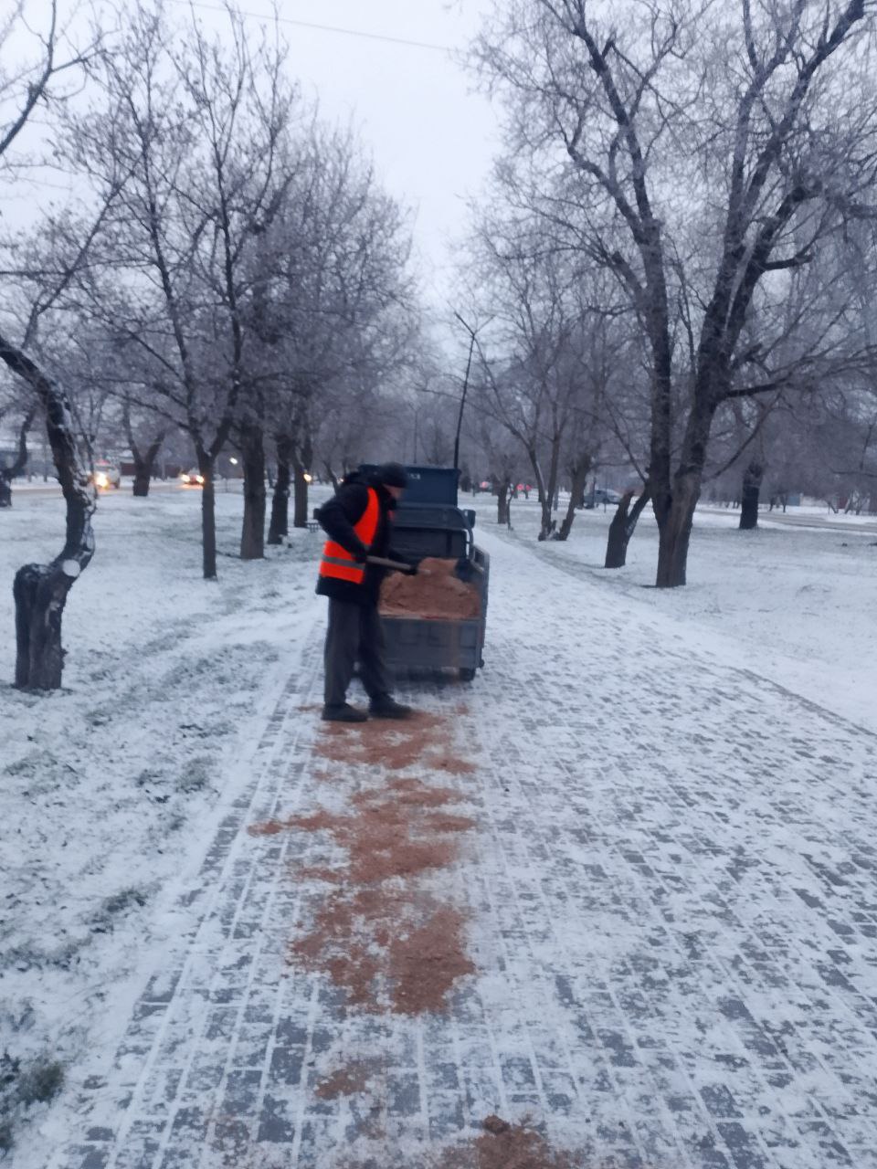 Посыпали пешеходные дорожки в скверах на ул. Суворова и проспекте Мира.