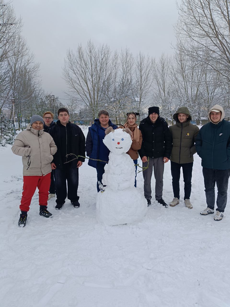 Встреча прошла в лучших народных традициях: студенты пели колядки, делились семейными историями и обычаями празднования. Не обошлось и без зимних забав — на улице ребята играли в снежки и лепили снеговика.