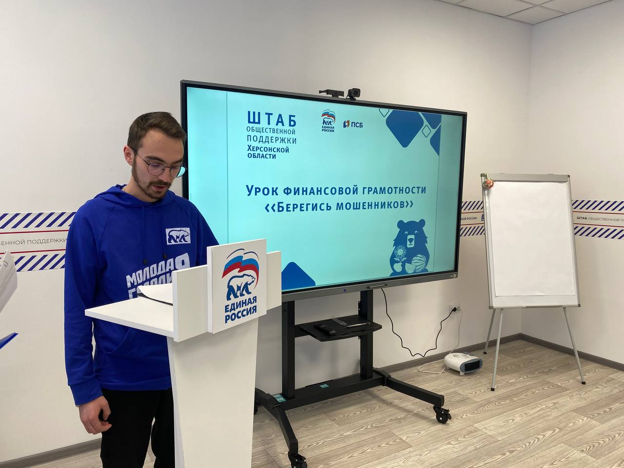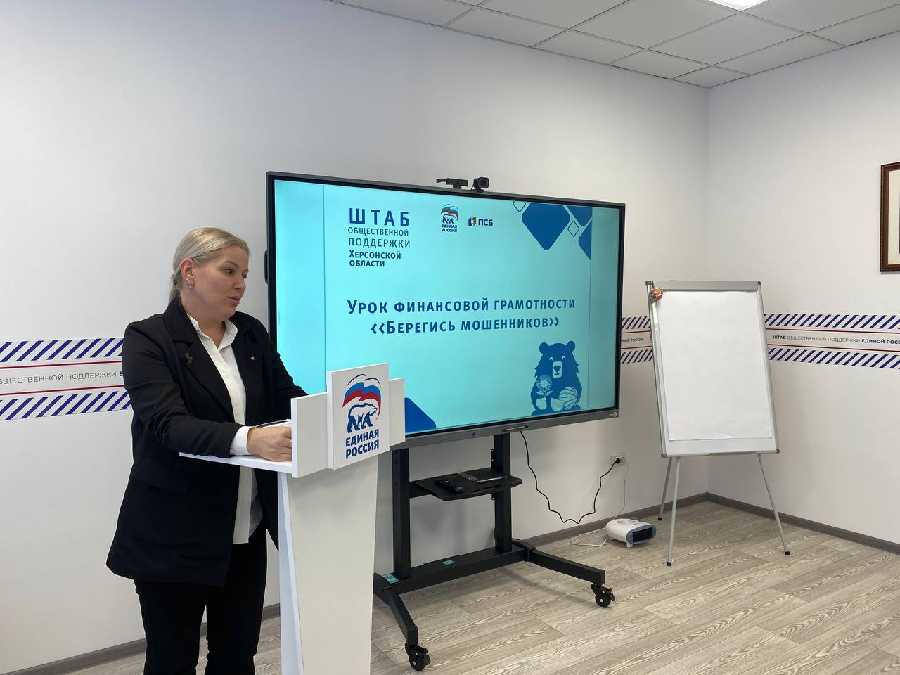 Сотрудники дополнительного офиса "Херсонский" Промсвязьбанка в Штабе общественной поддержки партии провели занятие по финансовой грамотности для пожилых людей. Его участники по проекту Единой России "Старшее поколение" узнали о противодействии популярным схемам мошенничества.