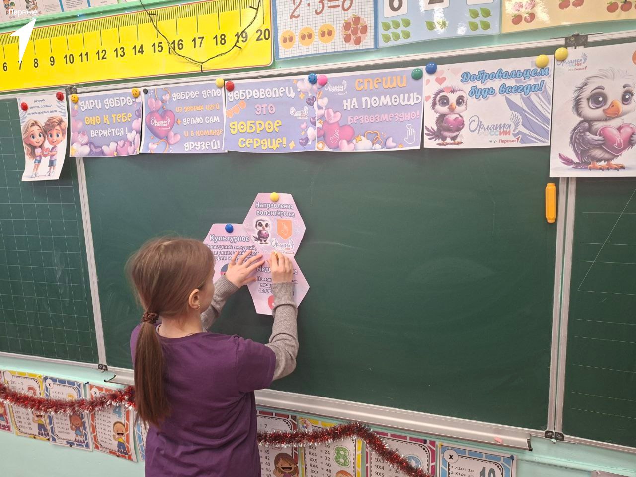 За время занятия ученики начальной школы составили портрет настоящего добровольца, узнали, что волонтерство бывает разным, обсудили, какими качествами должен обладать человек, который хочет менять мир к лучшему. В завершение занятия ребята дружно исполнили песню о добре и дружбе.