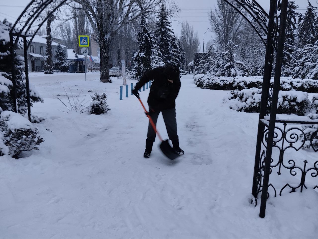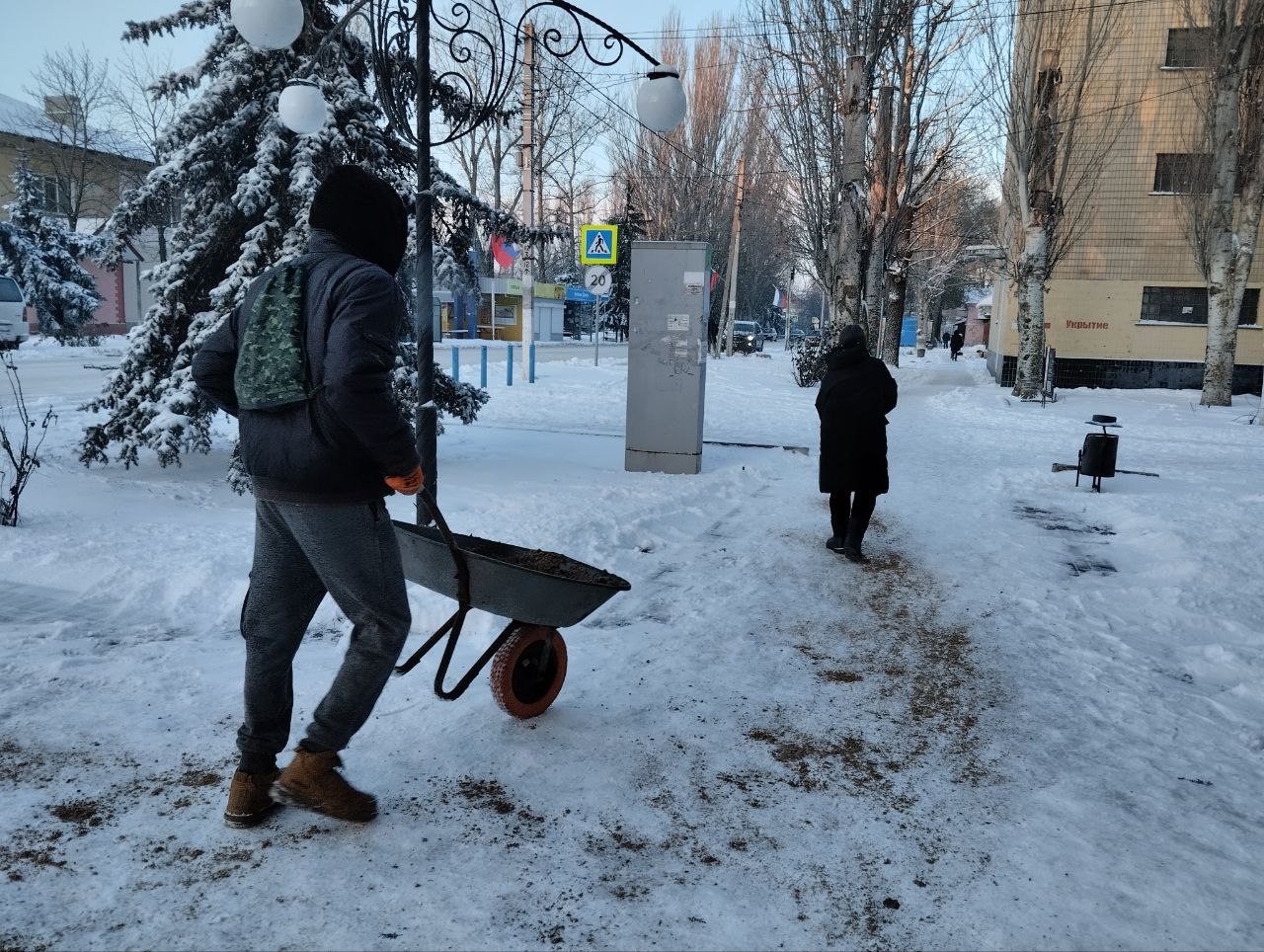 В Скадовске продолжается активная работа по обеспечению безопасности горожан в зимний период. Сотрудники муниципального бюджетного учреждения «Джарылгач» ведут системную борьбу с гололёдом, образовавшимся после снегопада.