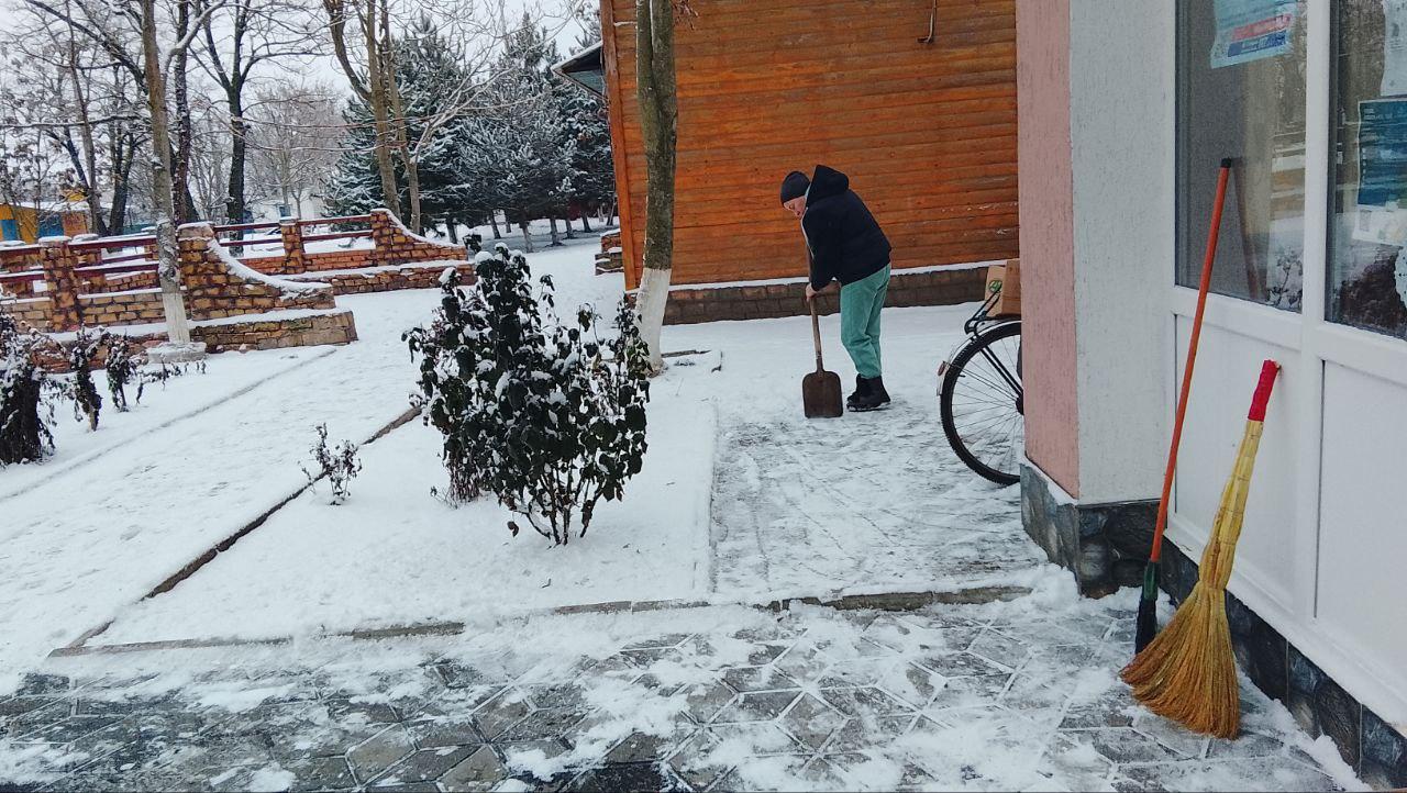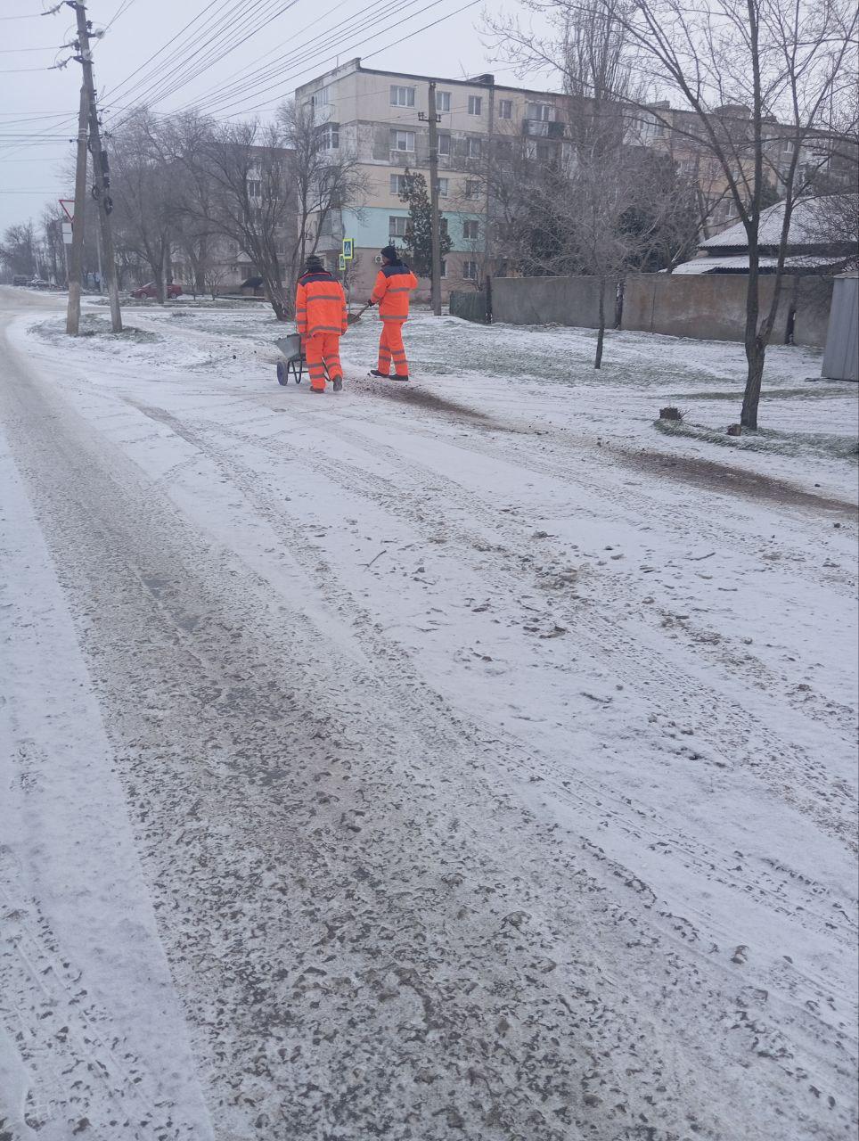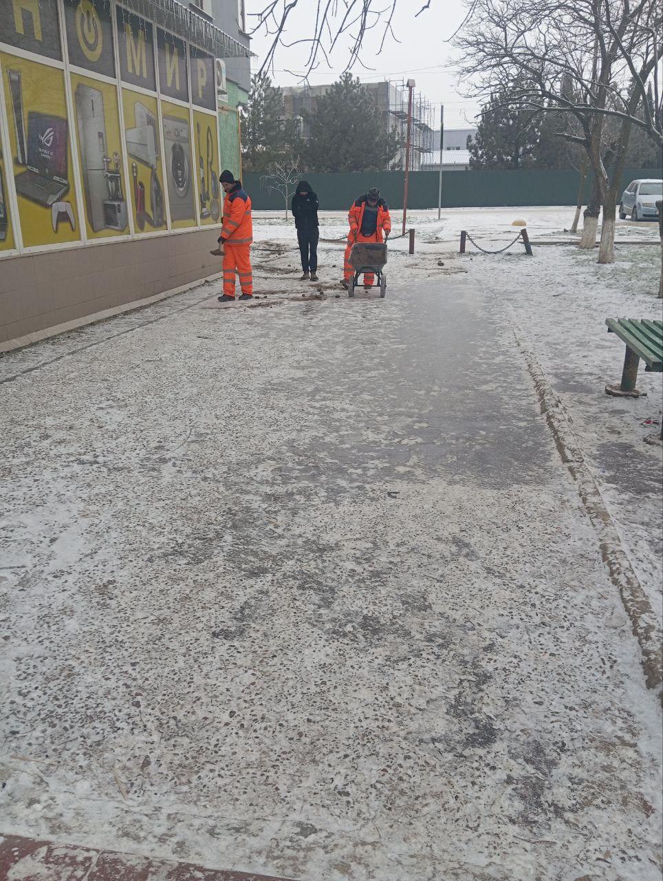 С самого утра сотрудники Новотроицкого жилищно-коммунального предприятия убирают снег и посыпают тротуары песком для безопасного перемещения пешеходов на территории Новотроицкого муниципального округа.