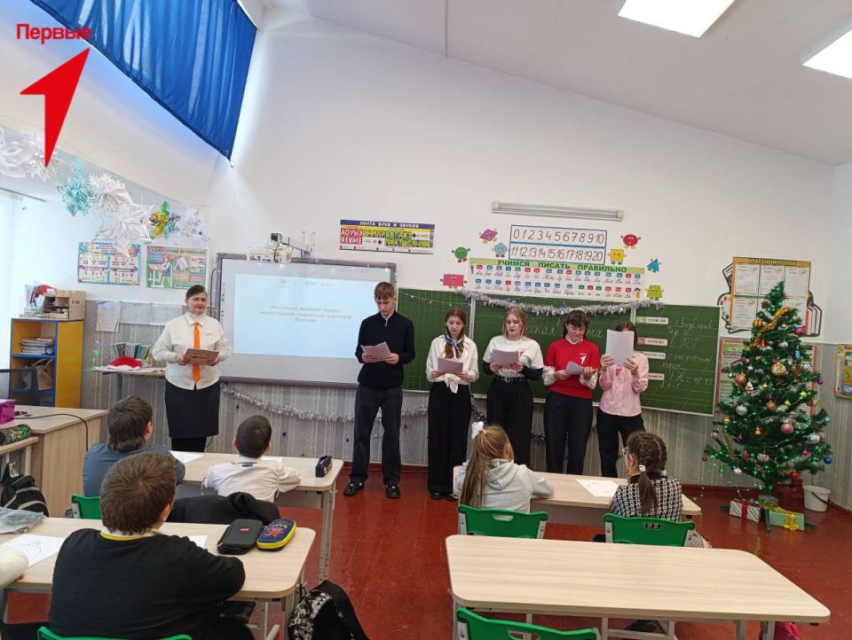 В Чаплинская школе № 1 прошли замечательные мероприятия, посвященные году Народного единства. Под руководством советника директора по воспитанию Анны Козуб активистки Движения Первых Виктория Блажовец и София Полозенко провели для учеников 2-х классов творческий урок «Мозаика зимних чудес: новогодние традиции народов России».