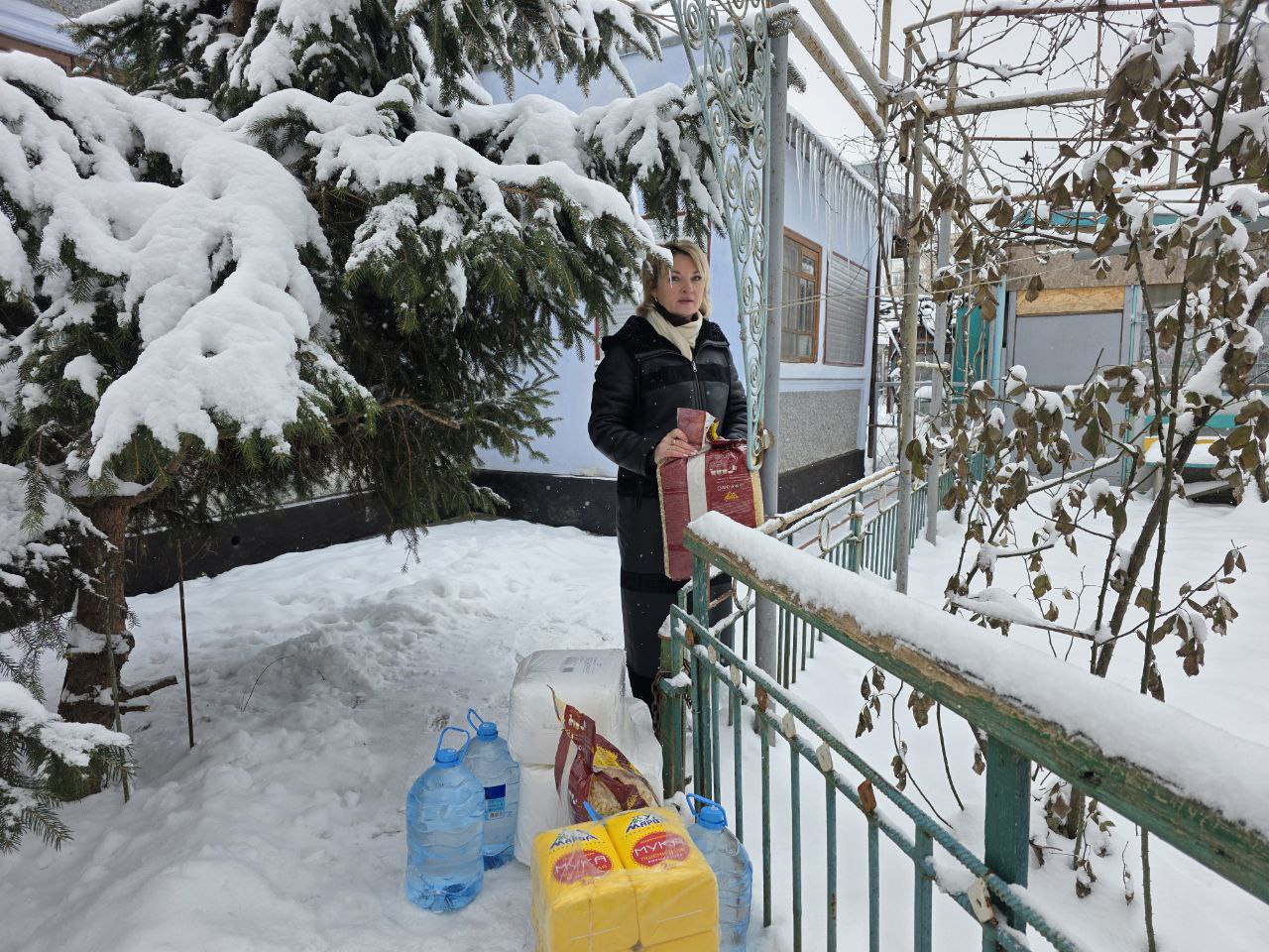 Волонтеры штаба «Единой России» по помощи жителям, оставшимся без электроснабжения, доставили воду и продукты 99-летней жительнице Скадовска
