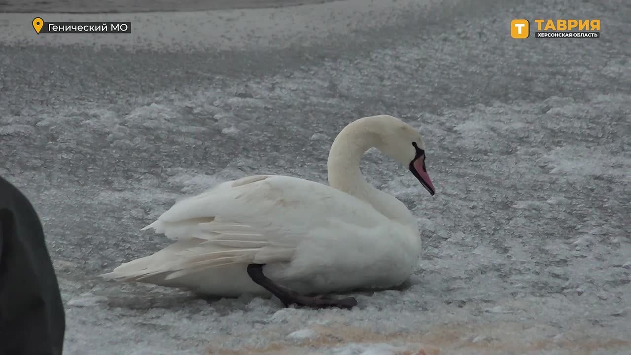 Спасенный из ледяной западни лебедь направляется к специалистам для осмотра