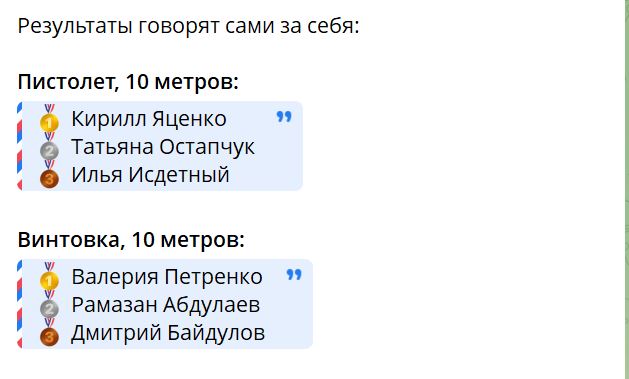 "Воспитанники ГБУ «Херсонский специализированный колледж» под руководством тренера-преподавателя Геннадия Беглецова продемонстрировали высший класс. Занять весь пьедестал и в стрельбе из пистолета, и в стрельбе из винтовки — это показатель системной, точной работы наставника", — отметили в Минспорта области.