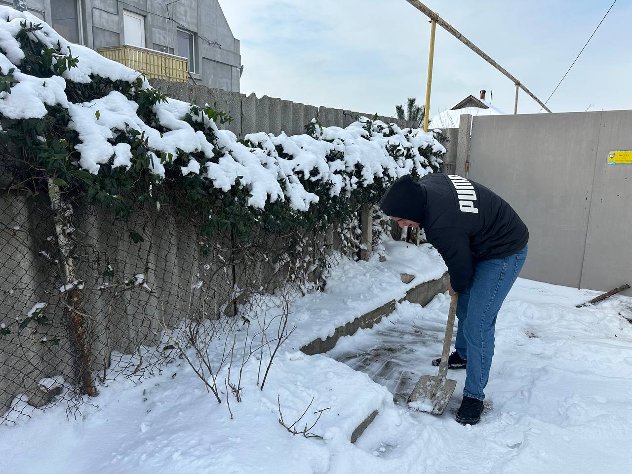 Волонтеры штаба «Единой России» по помощи жителям, оставшимся без электроснабжения, доставили воду и расчистили от снега двор по просьбе 80-летней пенсионерки