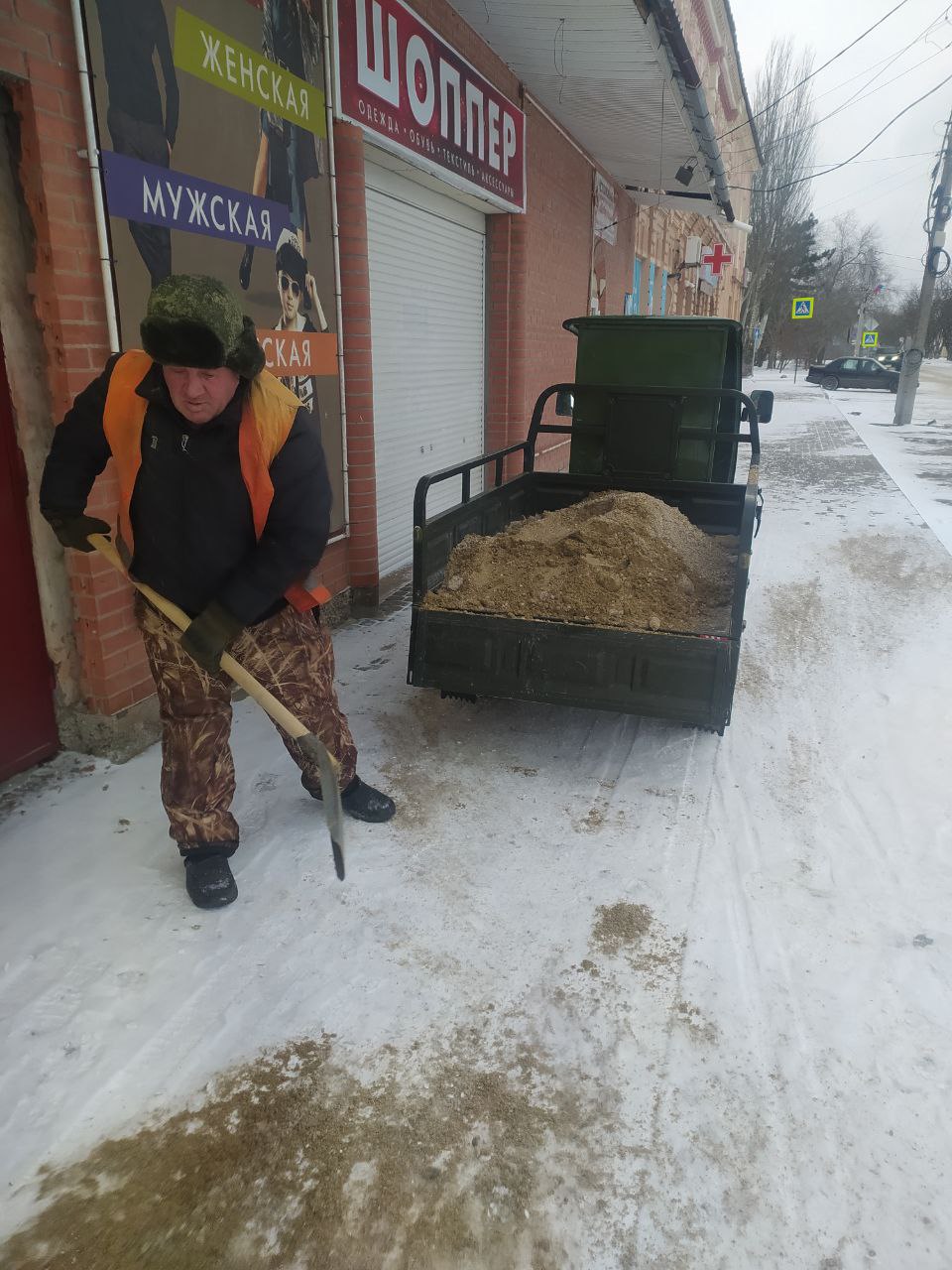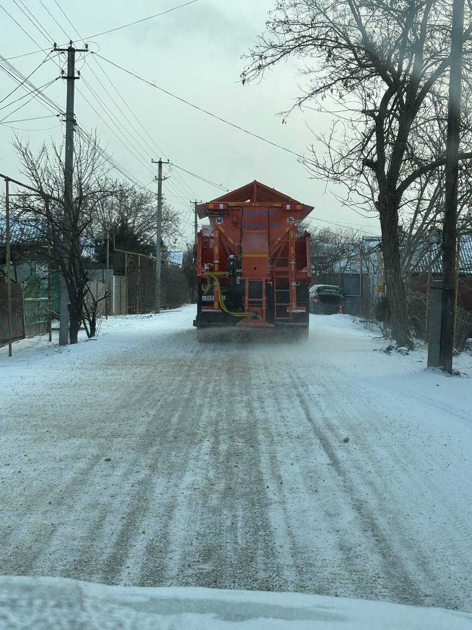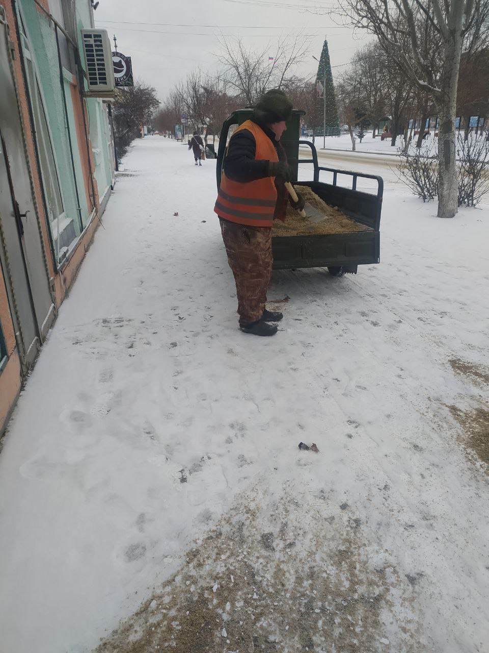 В выходные дни, 17 и 18 января, работники МКУ «Азовкоммунсервис» и ГБУ «Херсон Автодор» продолжают проводить работы по противогололёдной обработке улиц, спусков и тротуаров на центральных улицах Геническа и Арабатской Стрелки, особенно в местах с высокой проходимостью.