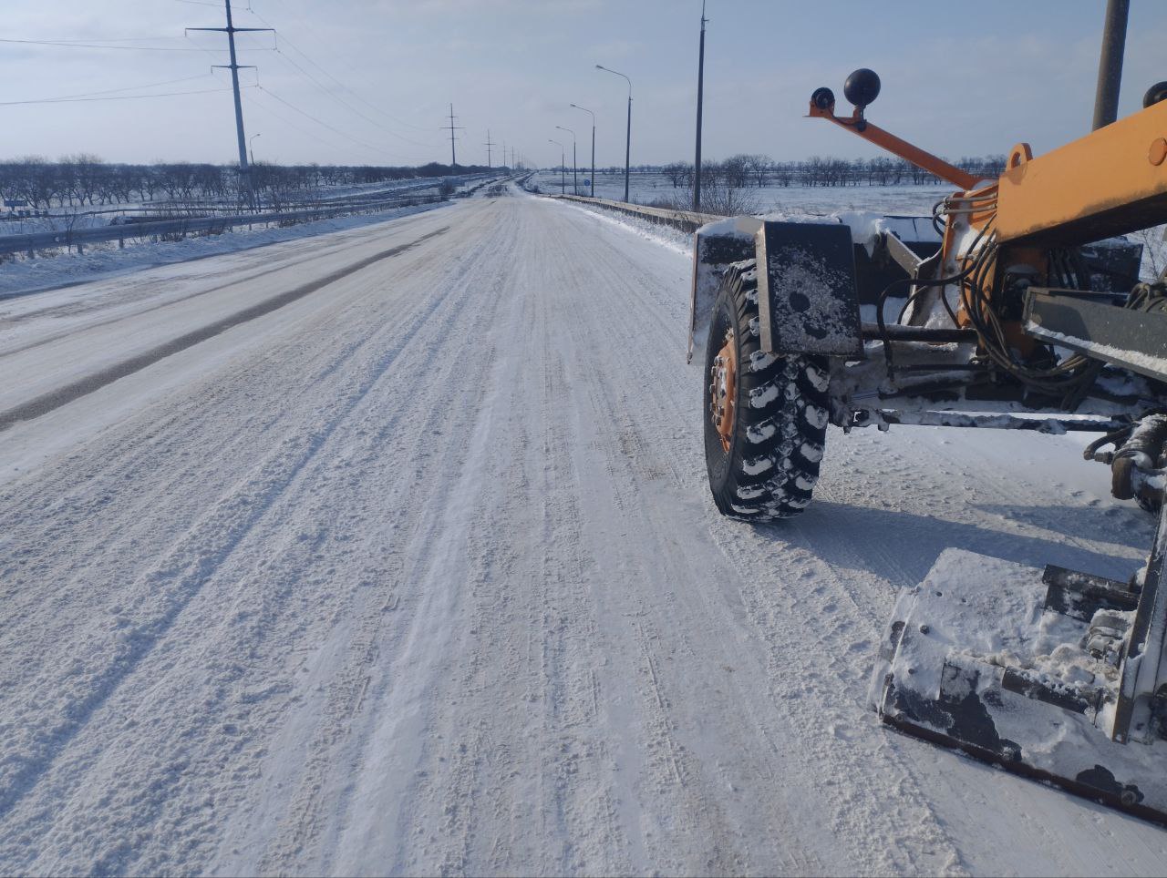 Сегодня техника (КДМ и грейдер) работала на расчистке Мелитопольской трассы.