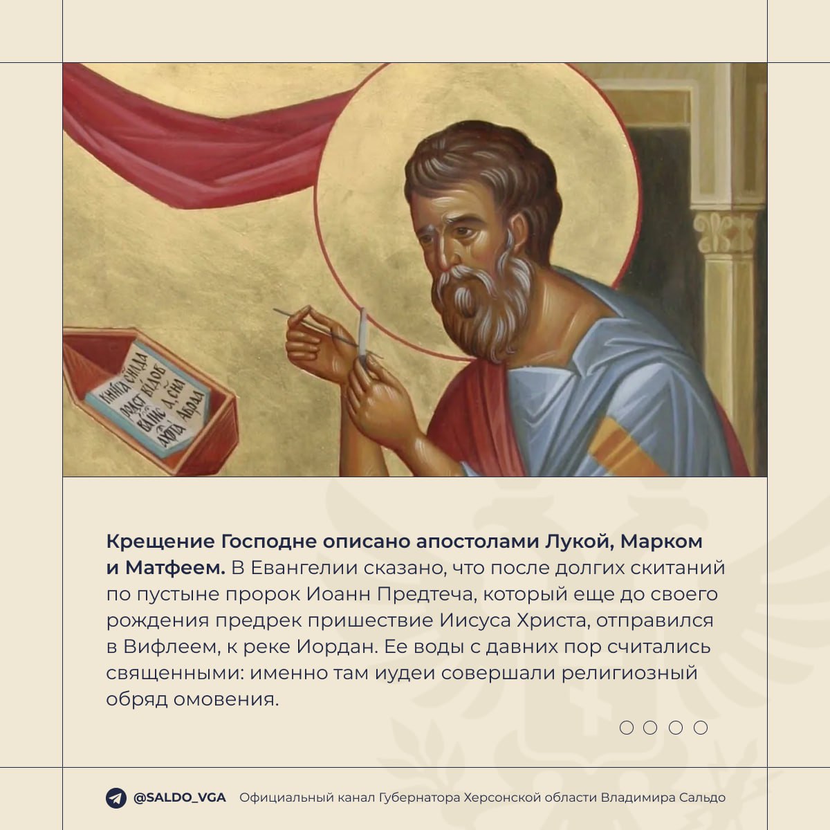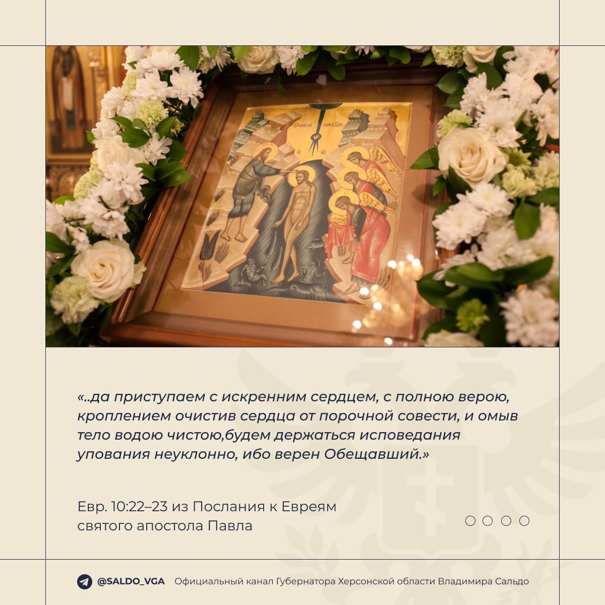 Дорогие жители Херсонской области, поздравляю вас с Крещением Господним!