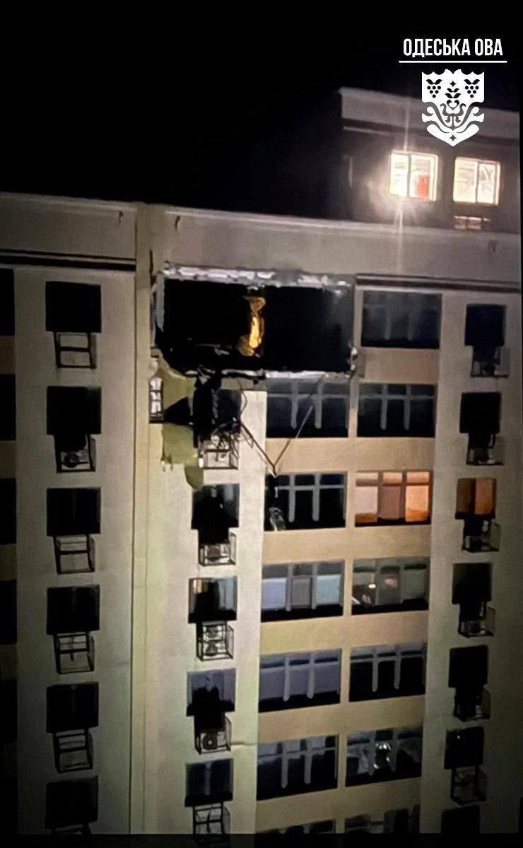 В Одесском районе беспилотник попал в многоэтажный жилой дом. Повреждены две квартиры, фасад здания, остекление, частный транспорт, припаркованный рядом.