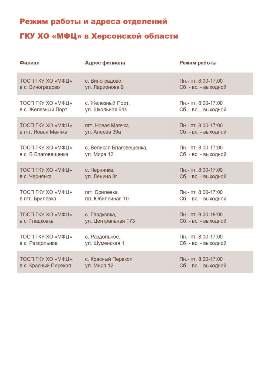 Актуальные адреса и график работы всех отделений МФЦ Херсонской области