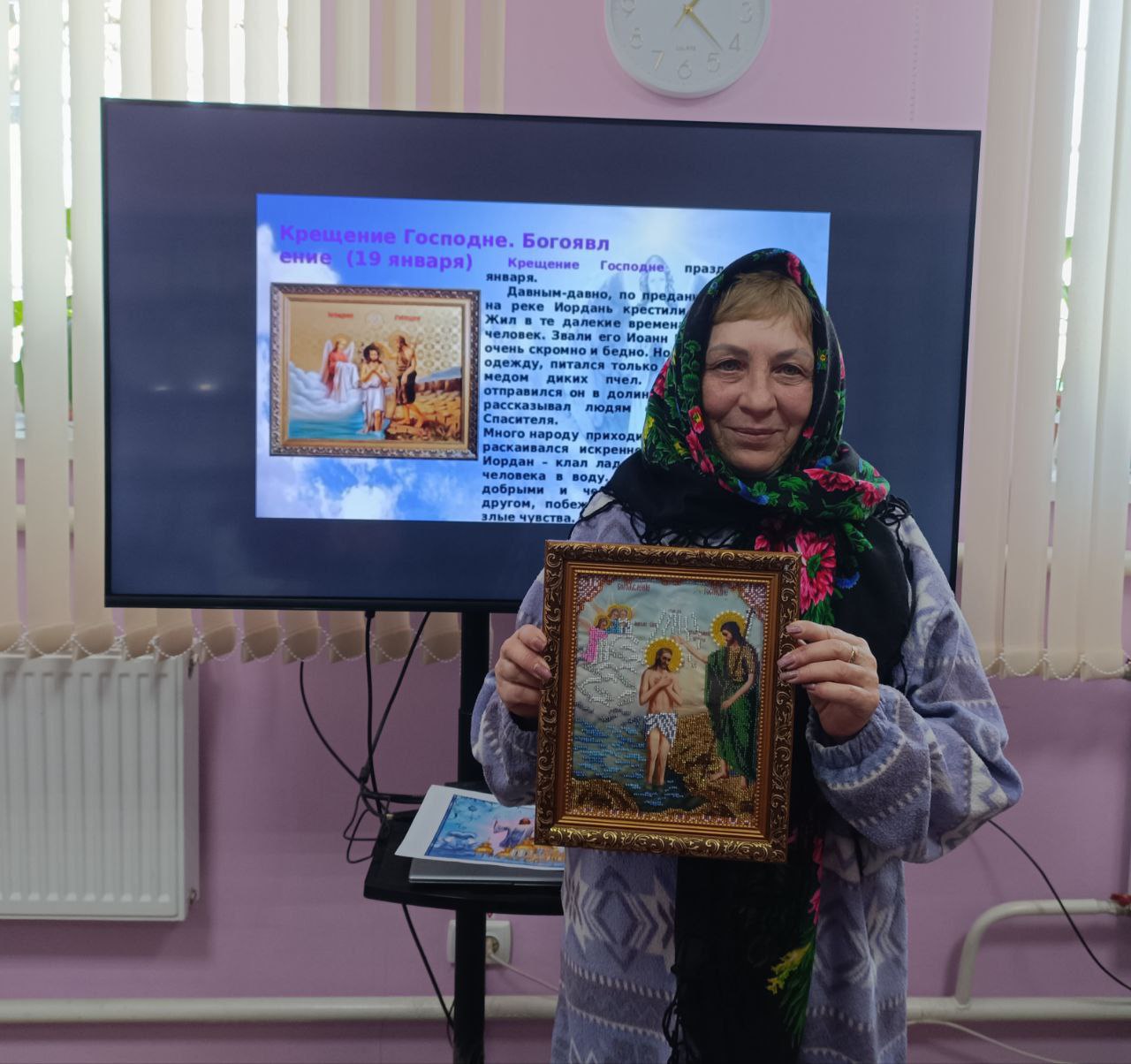 Посетители познакомились с историей православного праздника, узнали, как возник этот праздник, какие есть обычаи и традиции, как празднуют Крещение православные христиане.Ответили на вопросы, прочитали высказывания святых о крещенской воде.