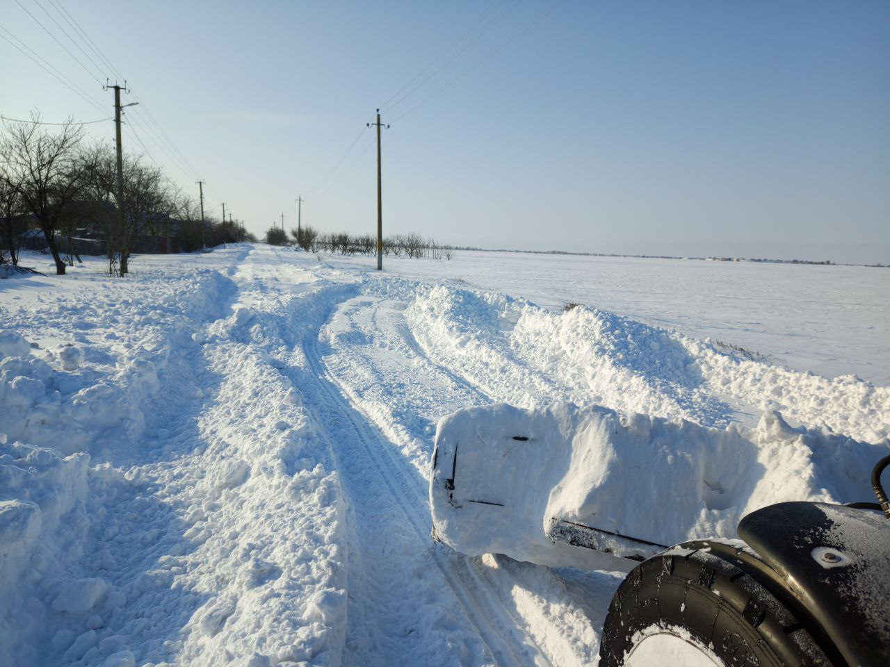 На фото:очистка дорог от снега, чтобы обеспечить доставку хлеба и возможность медицинским работникам добраться до фельдшерских участков. Работы выполнили сотрудники Малокаховского участка КСК.
