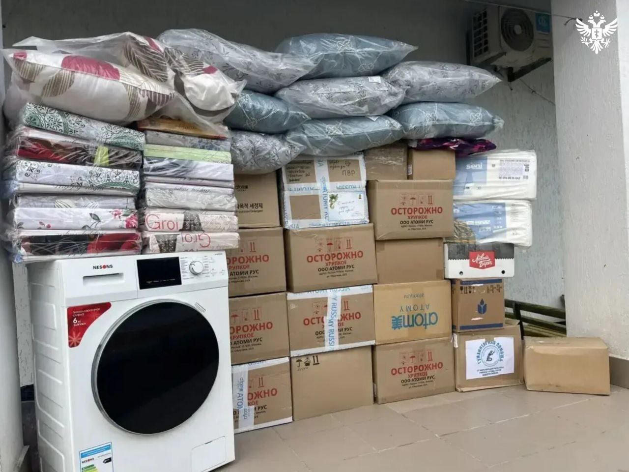 В грузе есть постельное белье, теплые одеяла, подушки, одежда для взрослых и детей, а также мыло, стиральный порошок и другие средства гигиены. Отдельно доставили бытовую технику — например, стиральную машину, чтобы людям было проще справляться с повседневными делами.