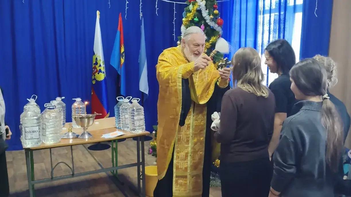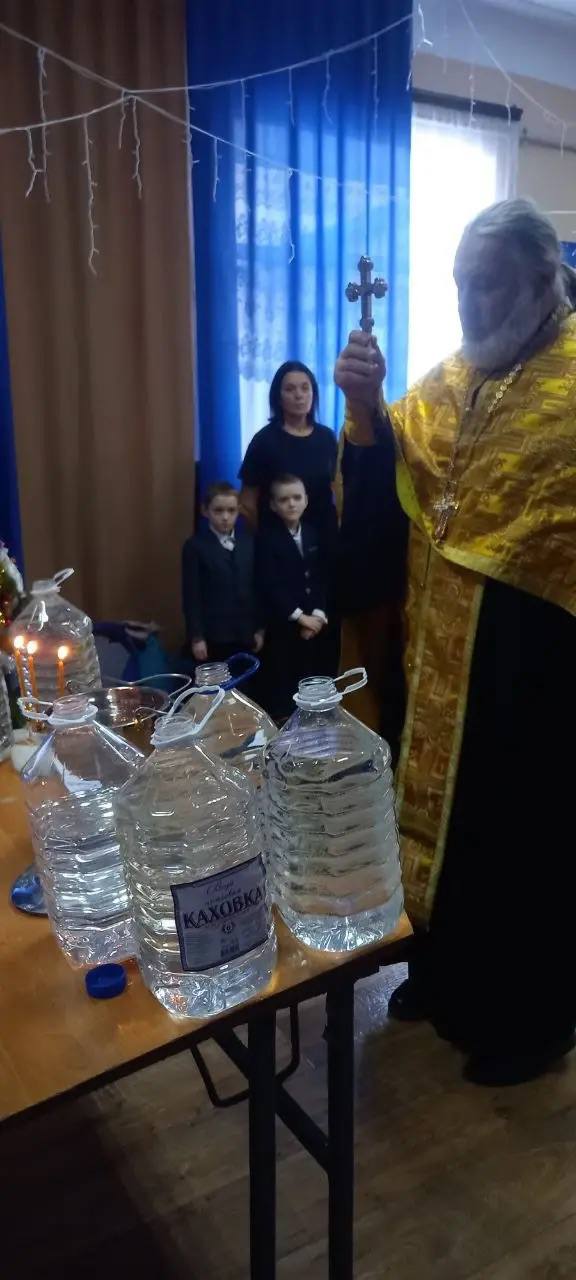 Для проведения праздничного богослужения в школу был приглашен протоиерей Александр Михайленко, клирик св. Варваровского храма с. Бехтеры Голопристанского благочиния Скадовской епархии РПЦ. В торжественной обстановке отец Александр совершил чин Великого освящения воды и обратился к ребятам с напутственным словом о значении праздника Богоявления.
