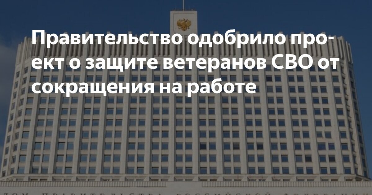 Правительство России без замечаний поддержало законопроект, предусматривающий дополнительные трудовые гарантии для участников специальной военной операции. Об этом следует из отзыва кабмина.