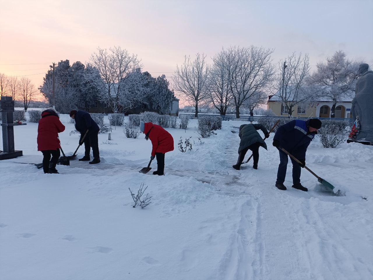 Работали дружно, весело, кидали снег лопатой, такая снежная зима бывает редко в нашем округе. Очистили снег с площадок, подходов к памятникам и самих памятников. Память для наших жителей – это не пустое слово, а общий вклад в сохранение истории.