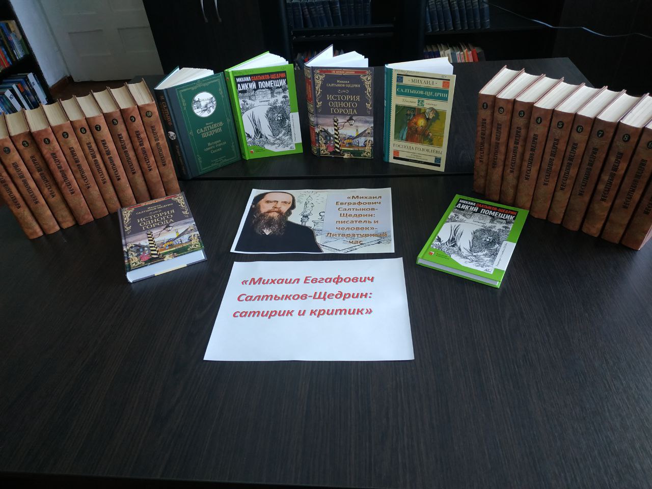 На выставках представлены известные произведения писателя, такие как «Господа Головлёвы», «История одного города», «Пошехонская старина», а также литература о его жизни и творчестве.