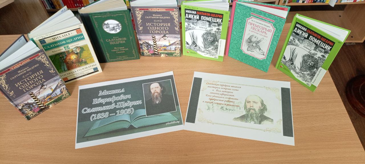 Ко Дню рождения великого русского писателя-сатирика Михаила Евграфовича Салтыкова-Щедрина организованы тематические книжные выставки, знакомящие читателей с творчеством автора.