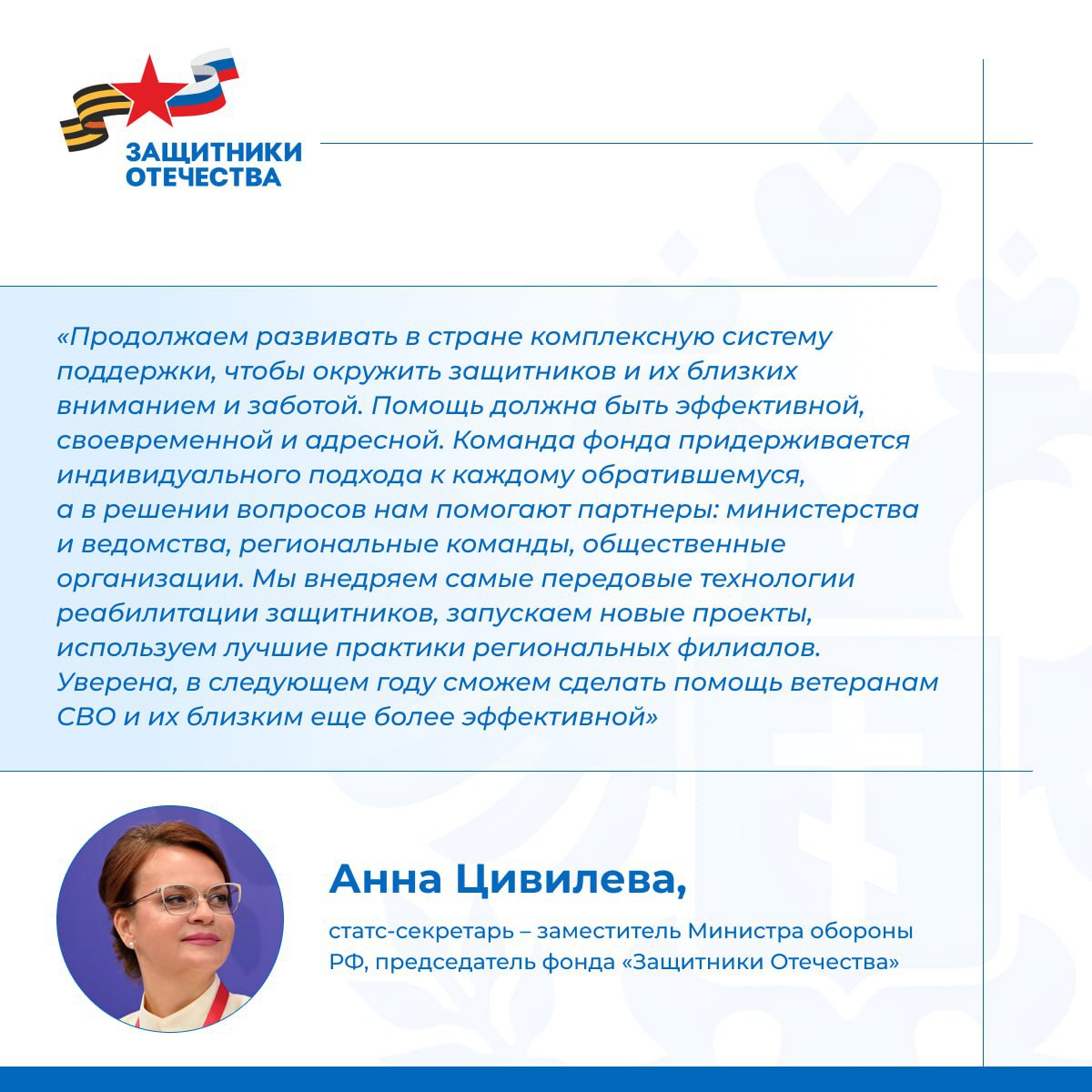 Государственный фонд «Защитники Отечества» был создан по Указу Президента России Владимира Путина в 2023 году. Основная цель — персональное сопровождение участников СВО, уволенных с военной службы, членов семей погибших и пропавших без вести.
