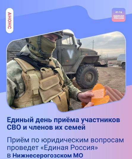 пройдёт Единый день приёма участников СВО и членов их семей.